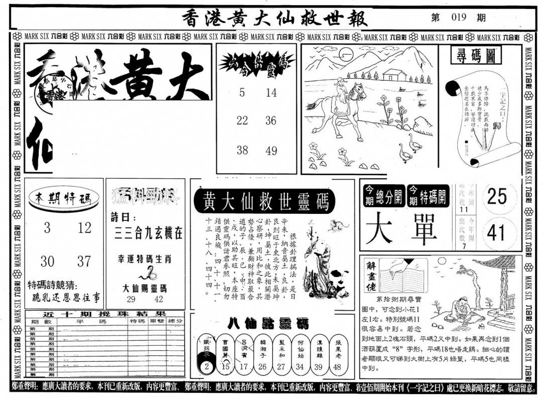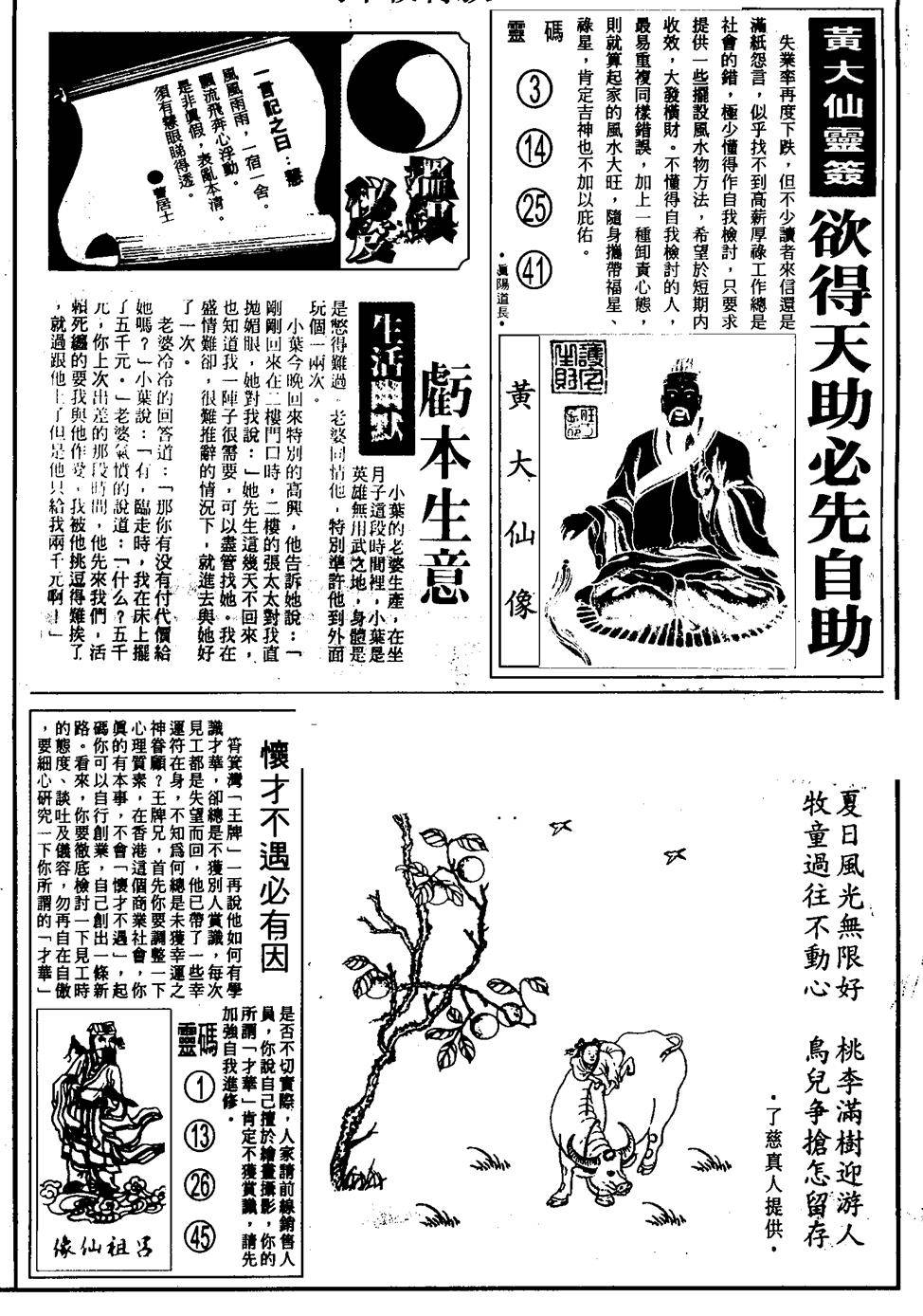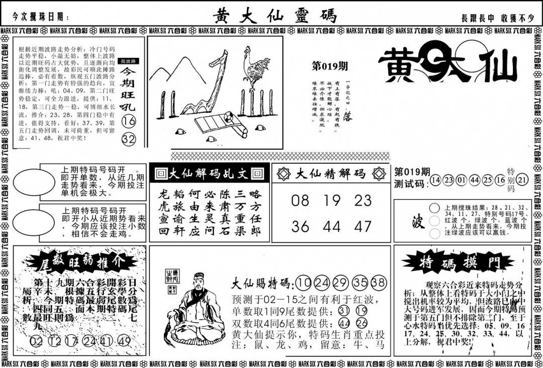 另版黄大仙灵码A