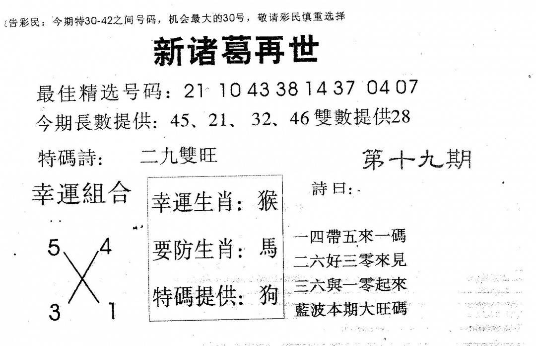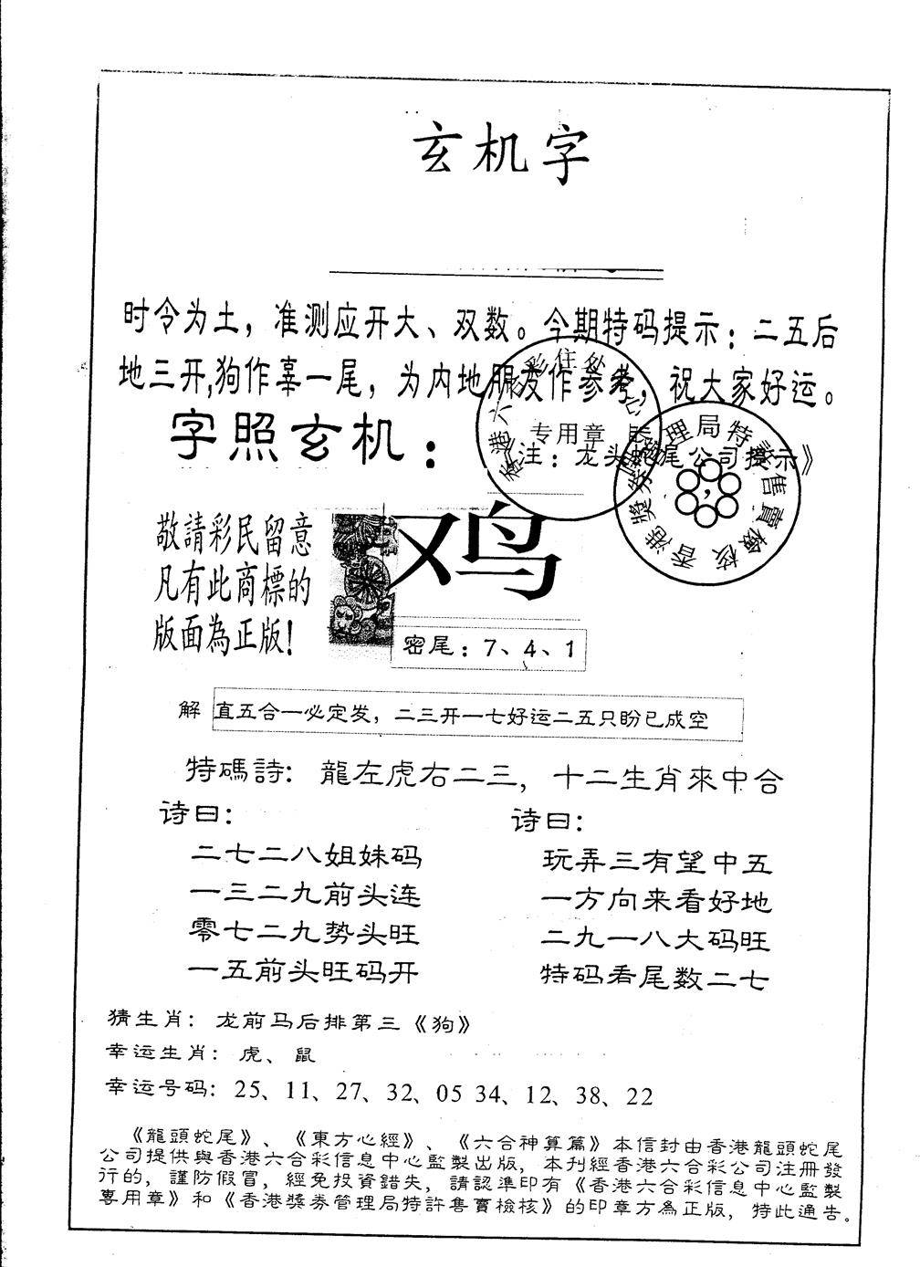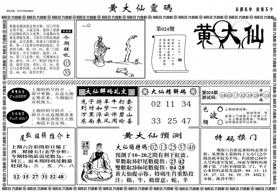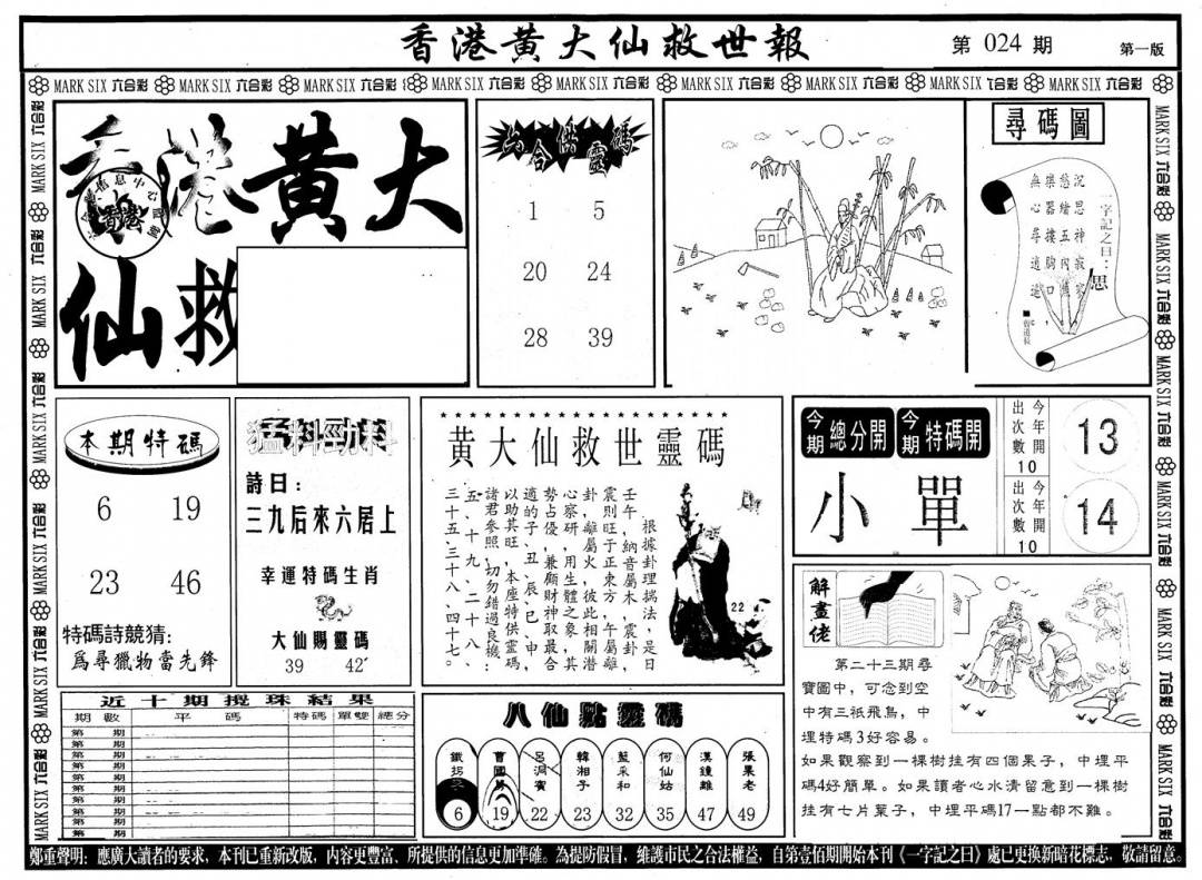 另版黄大仙灵码A