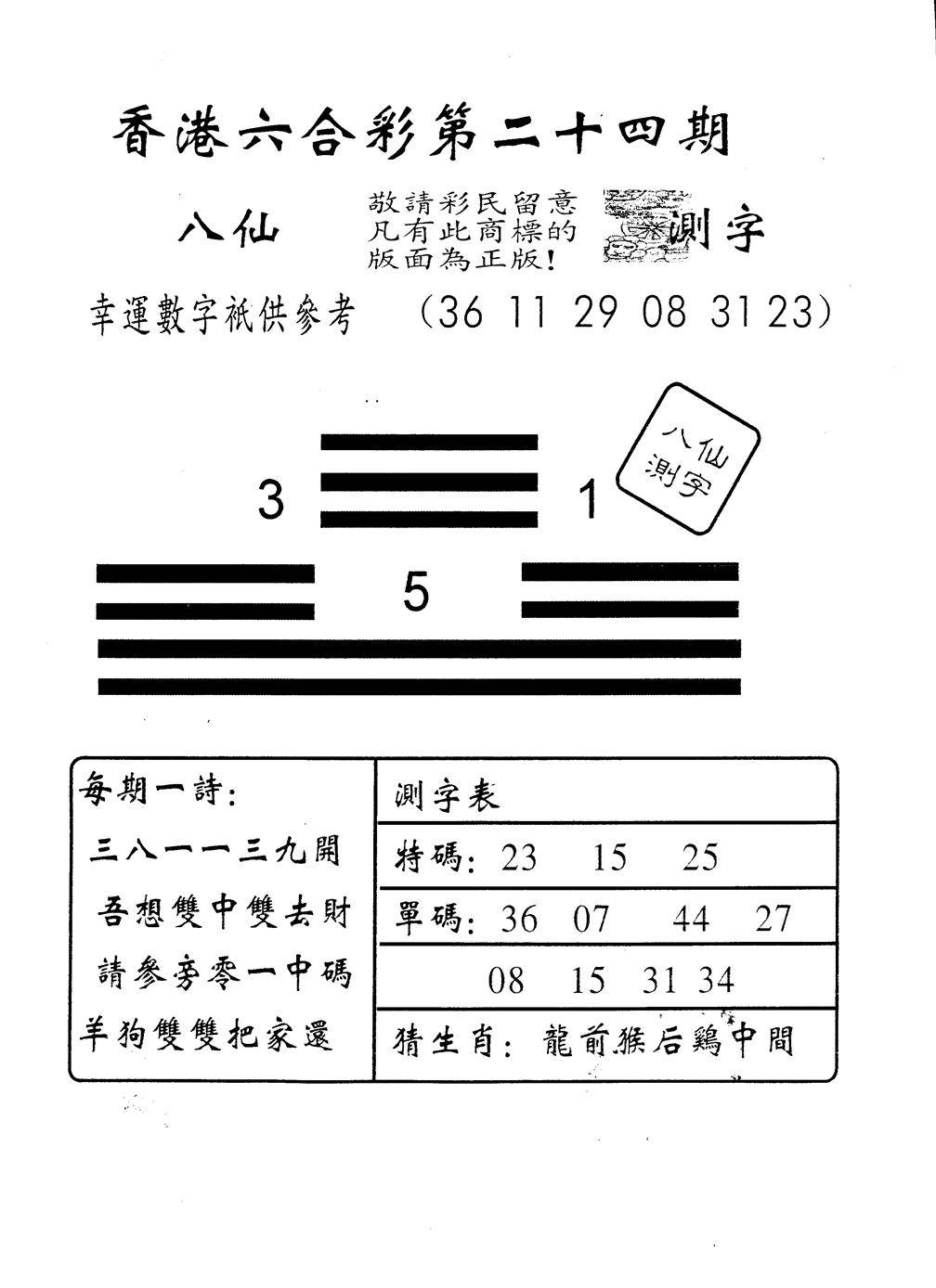 另版八仙测字