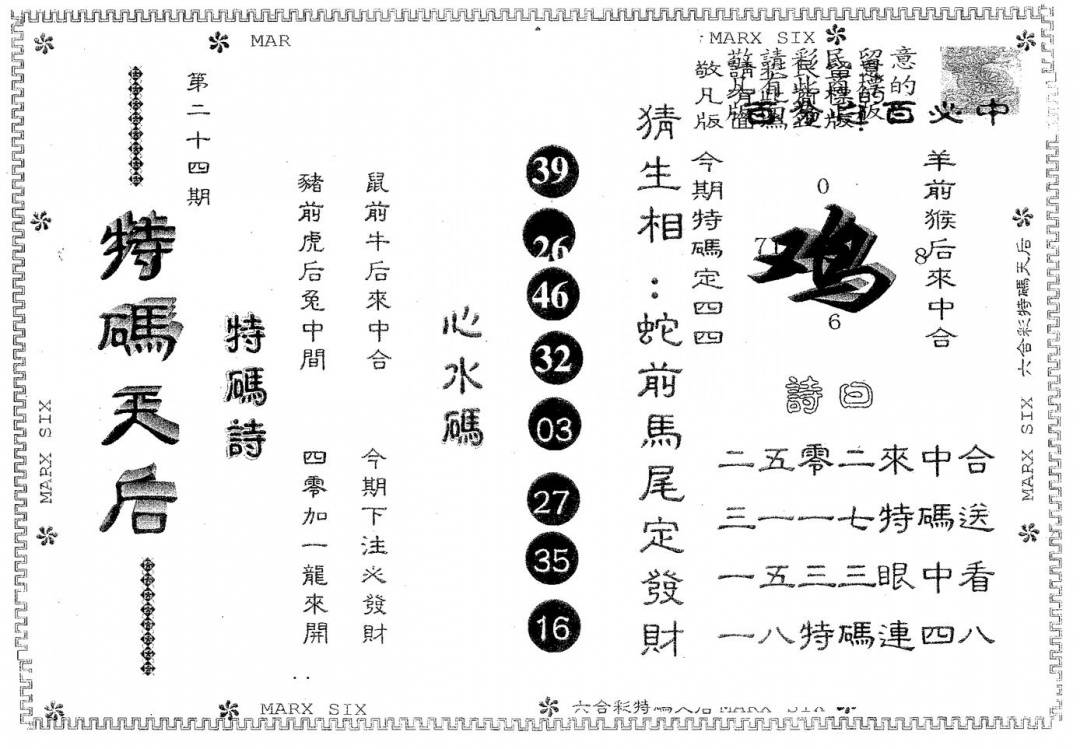 另版特码天后