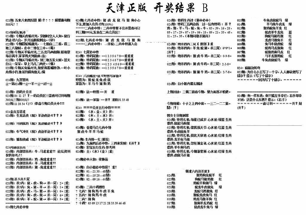天津正版开奖结果B