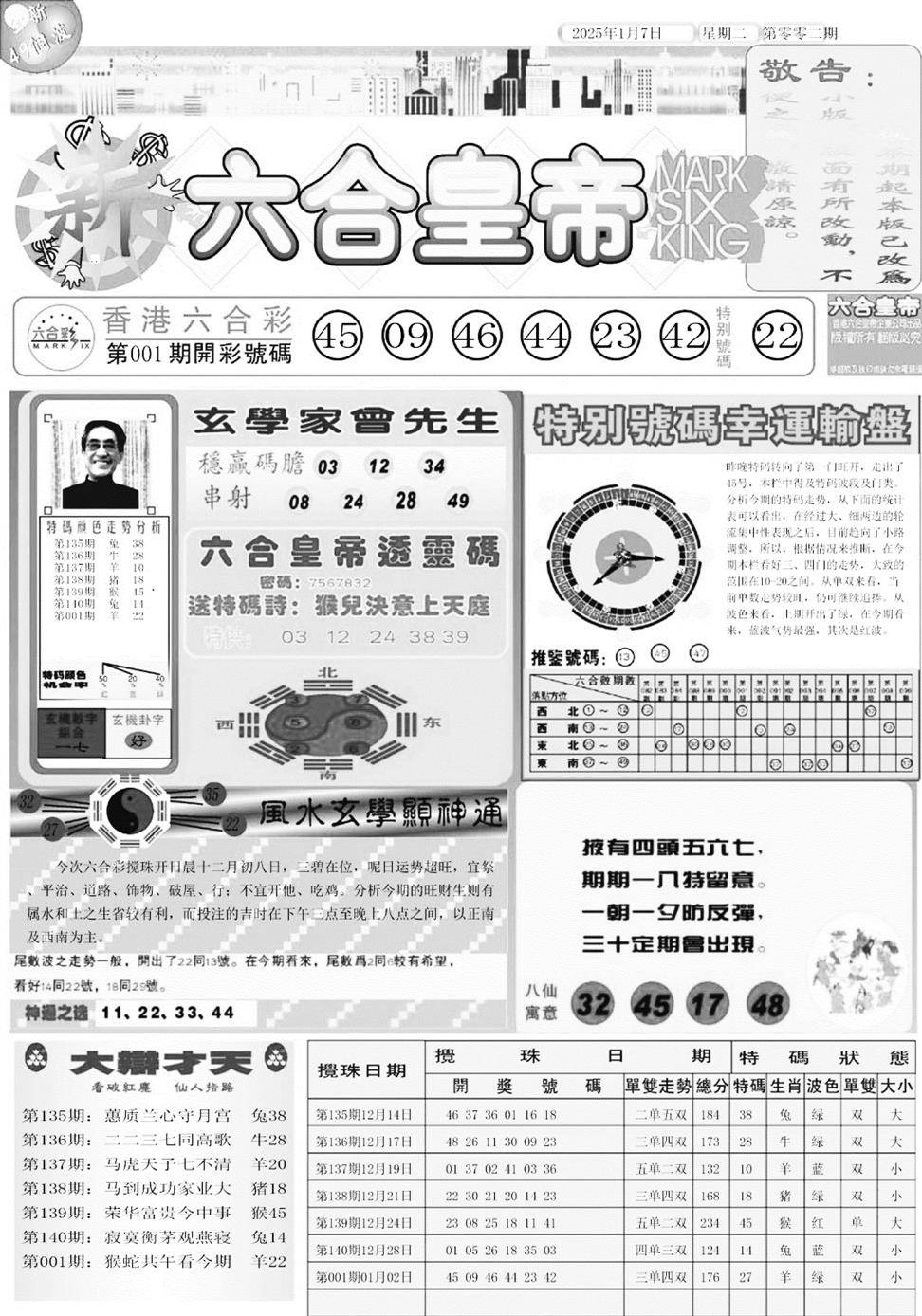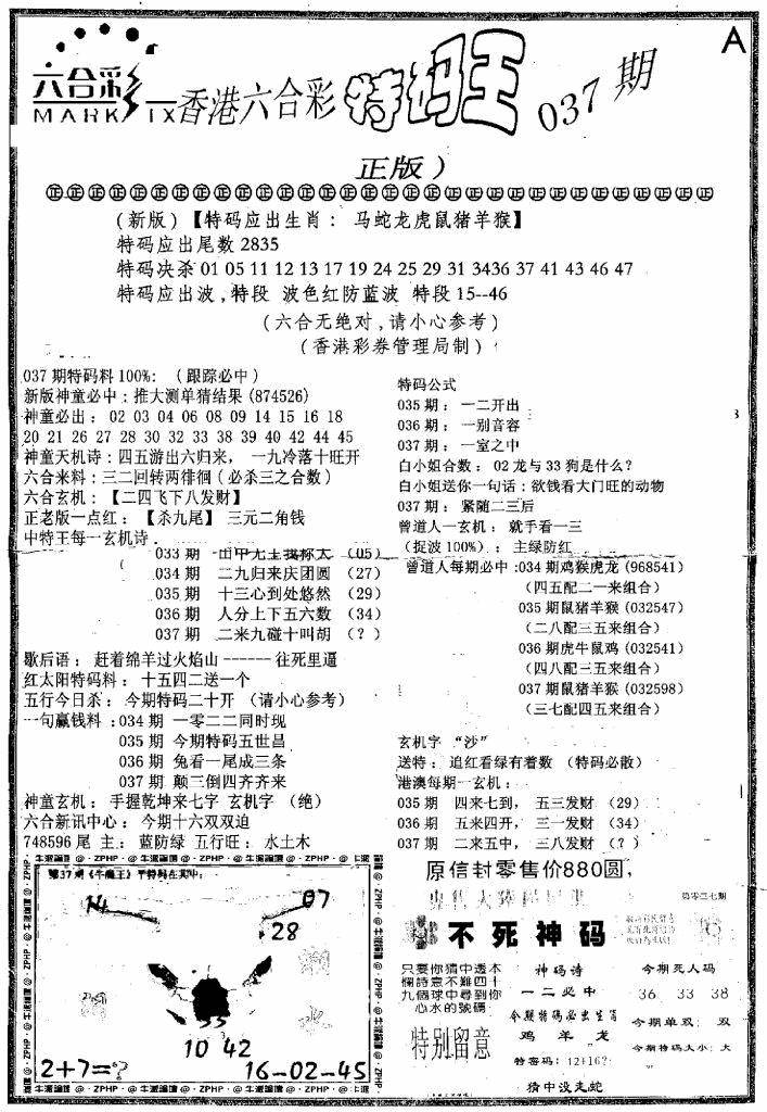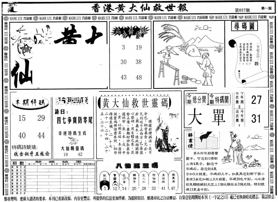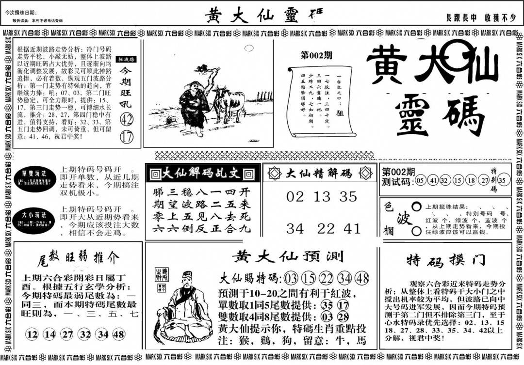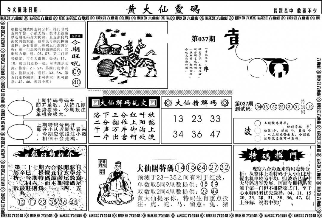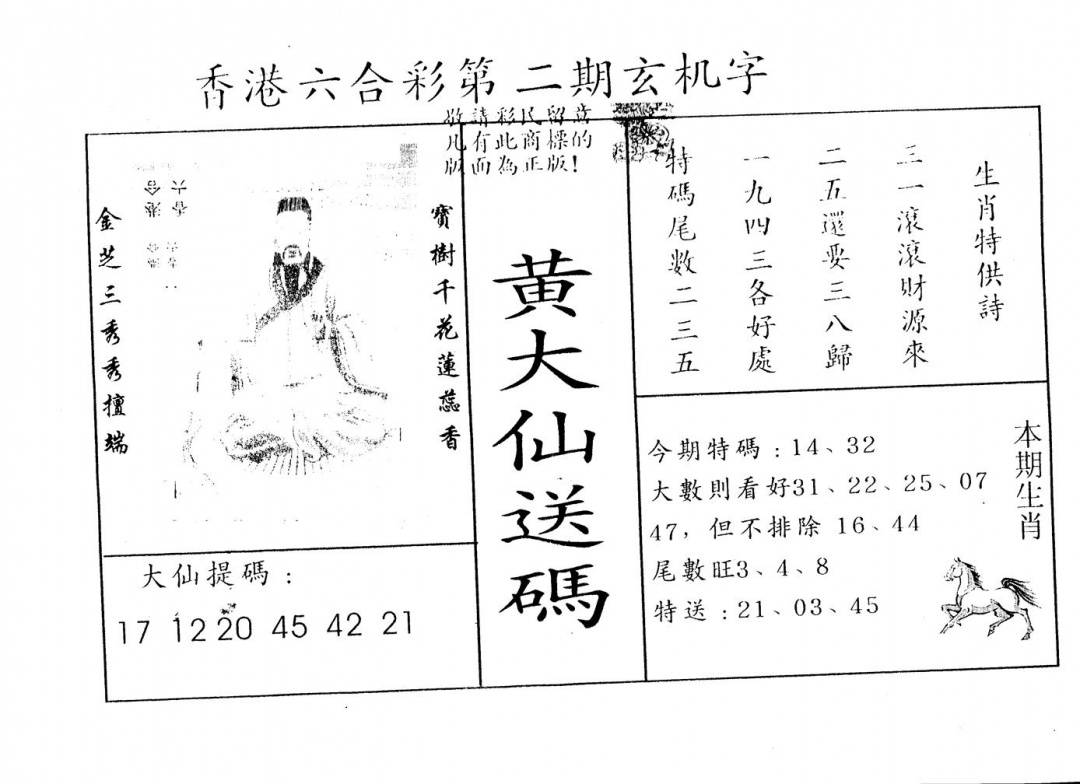 另版黄大仙灵码A