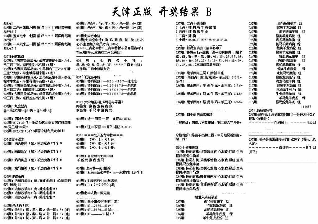 天津正版开奖结果B