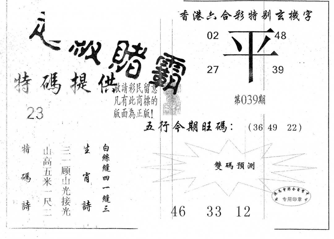 今日抓特码A(正版)