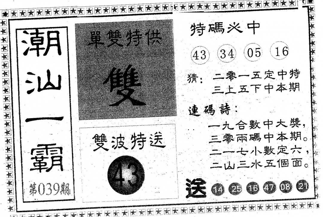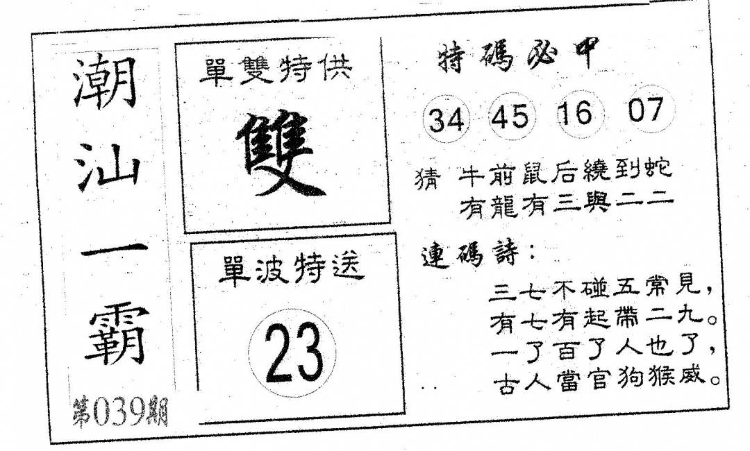 郑小姐特码报A