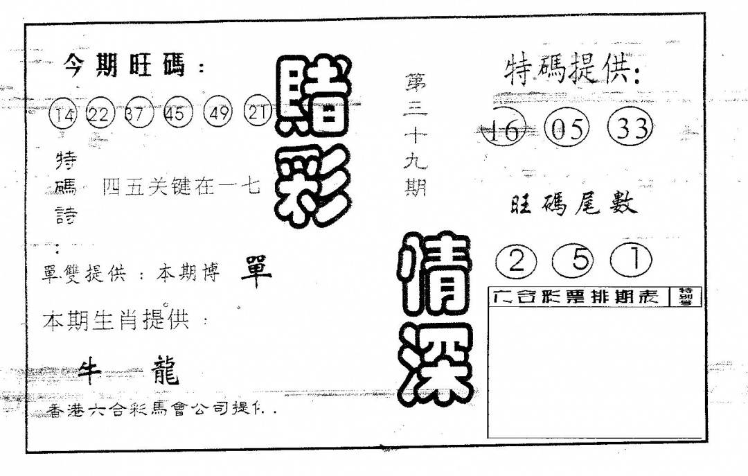 彩卷后庄A(保证香港版)