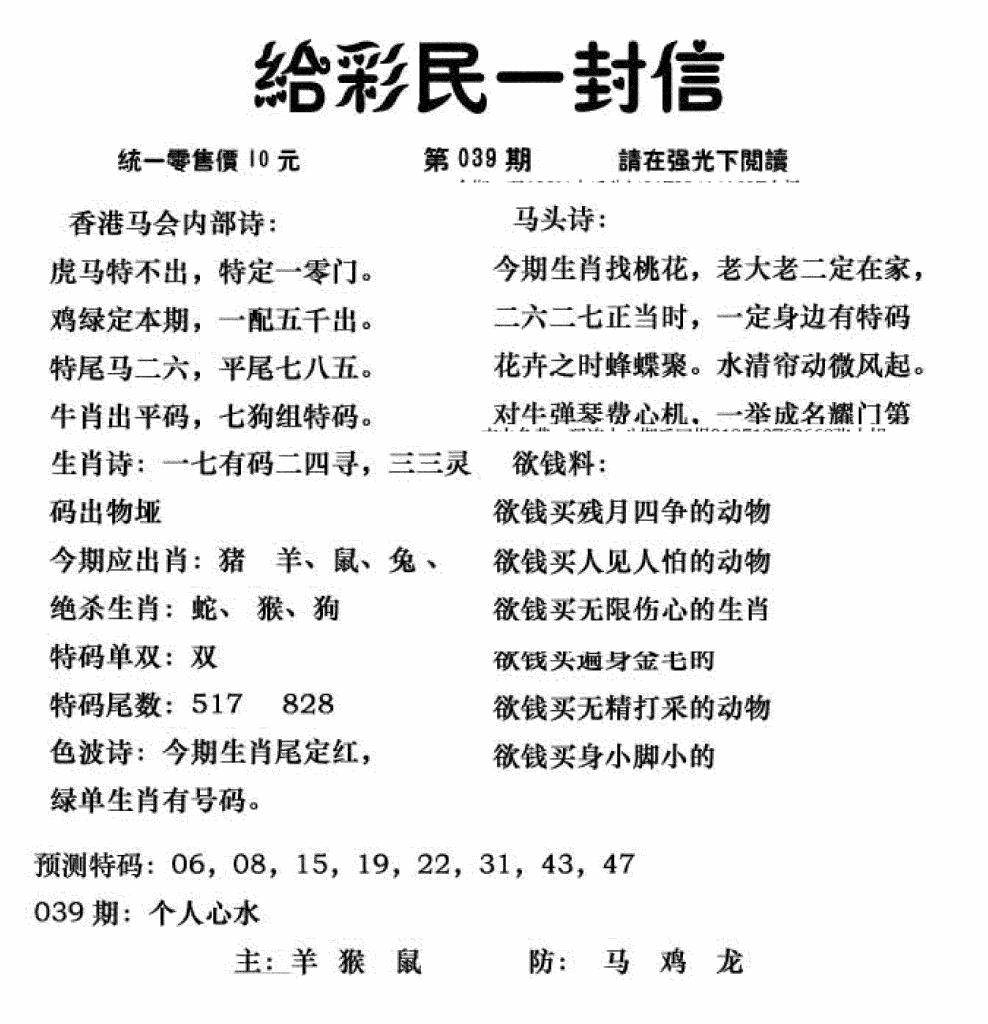 心水特码(信封)