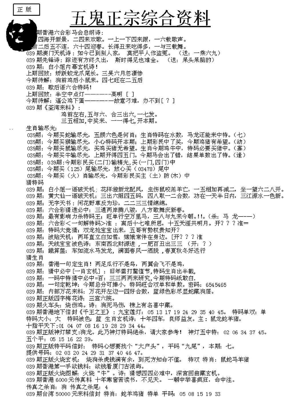 正版六合彩资料B
