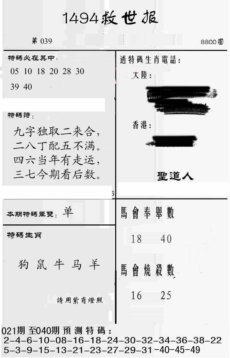 曾道人特码救世报B