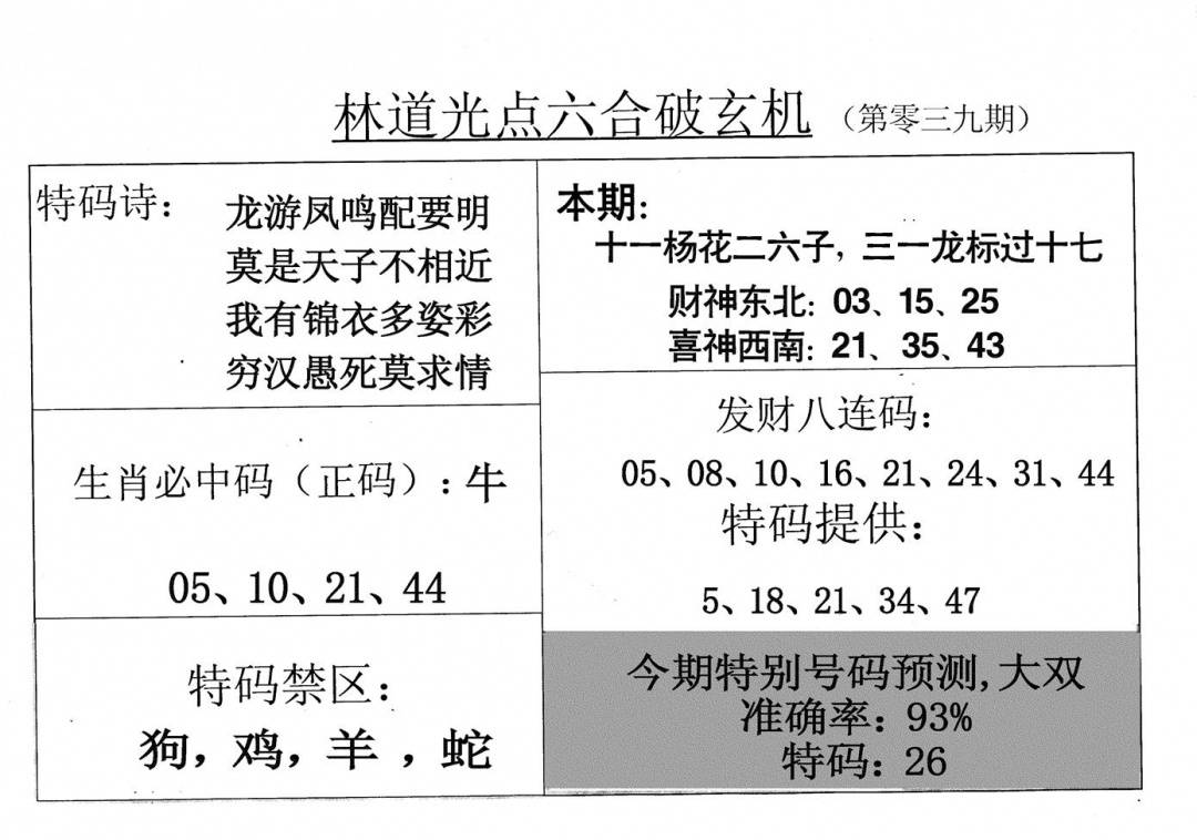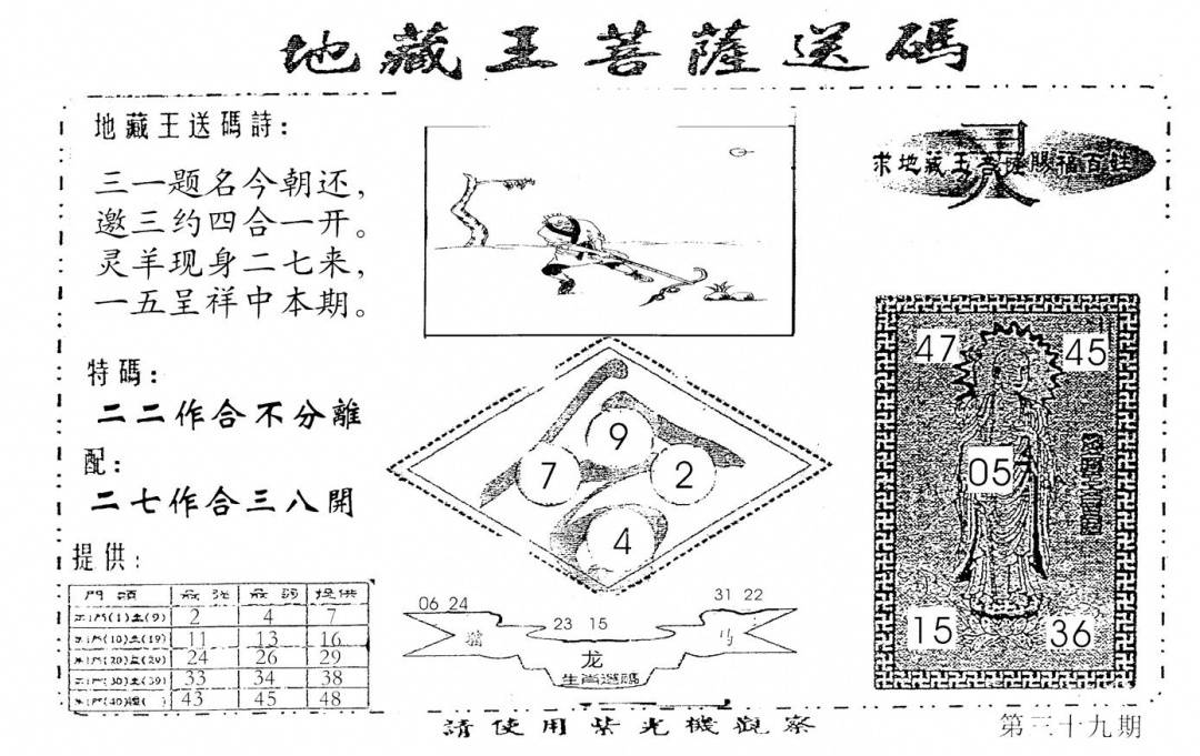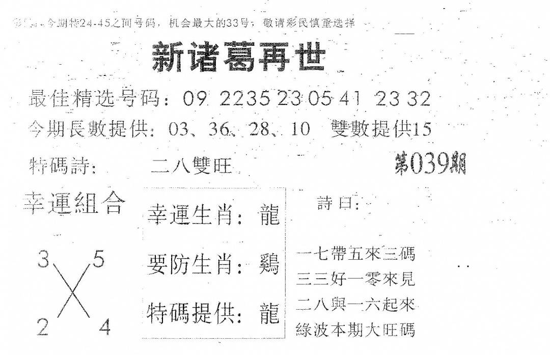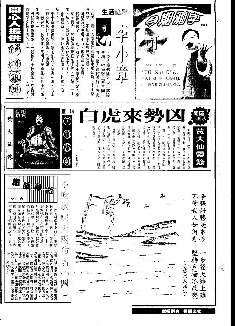 另版黄大仙灵码A