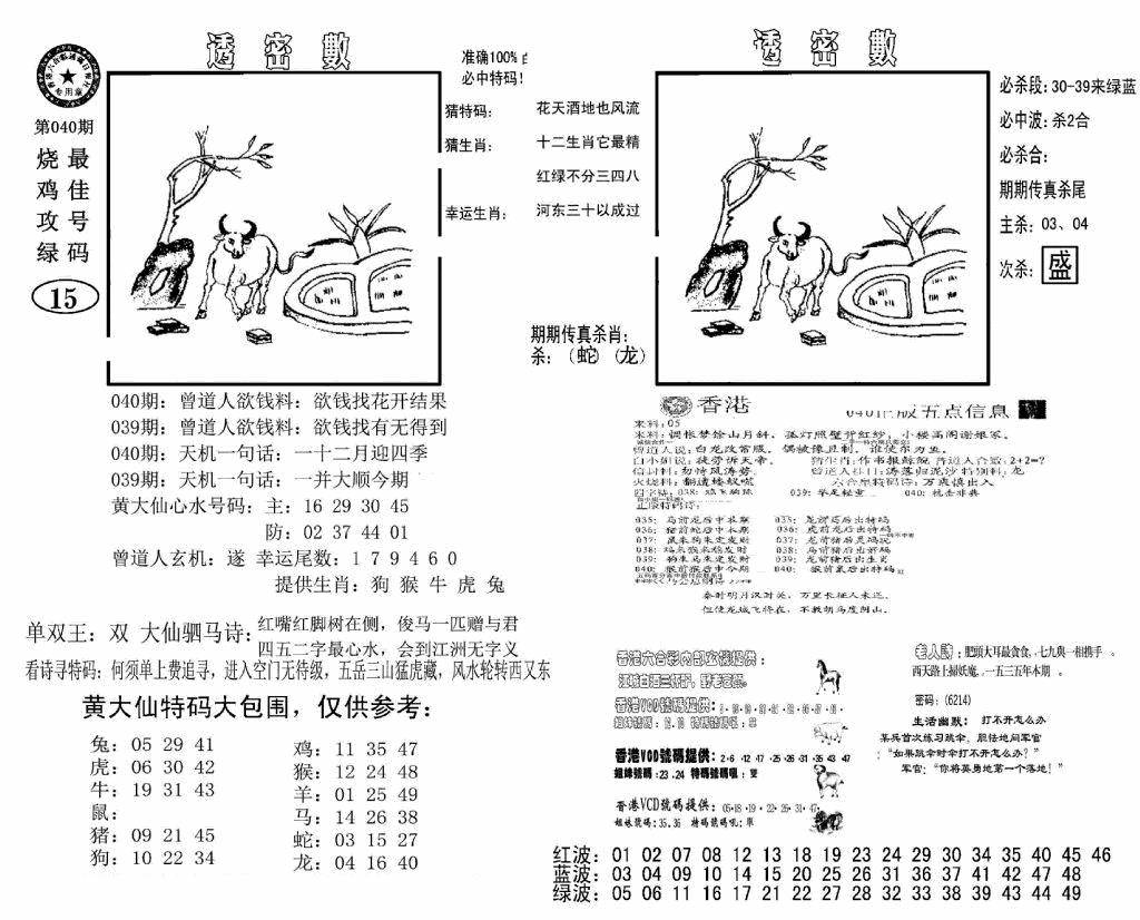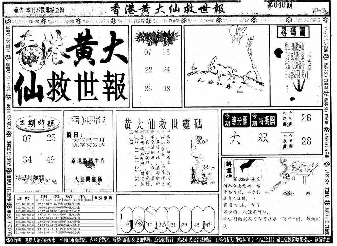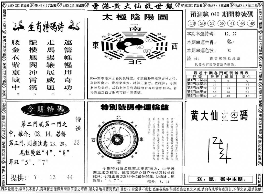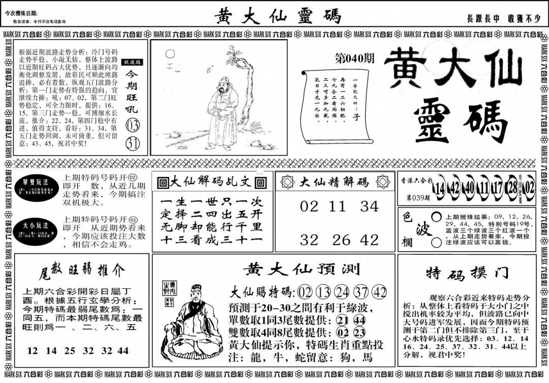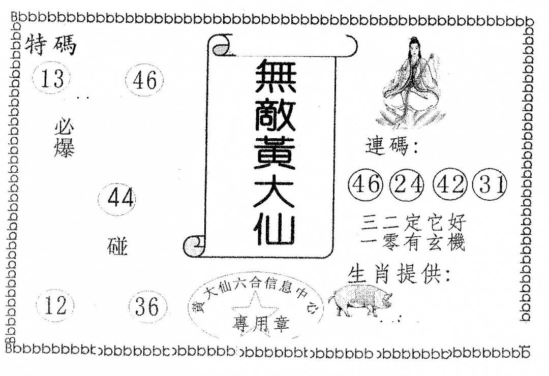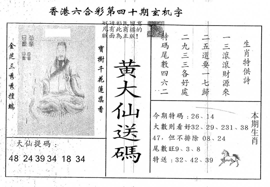 另版黄大仙灵码A