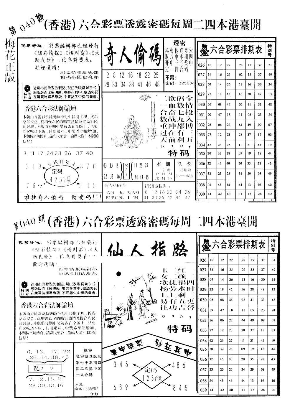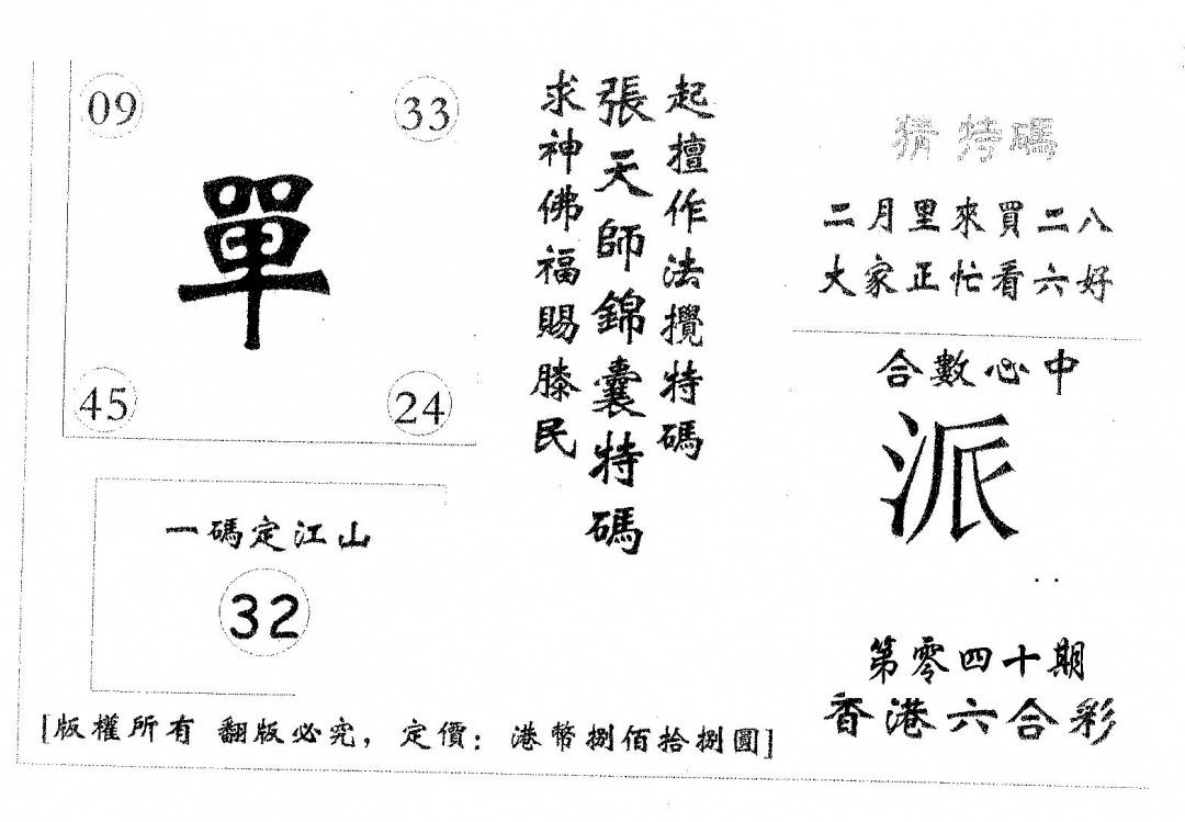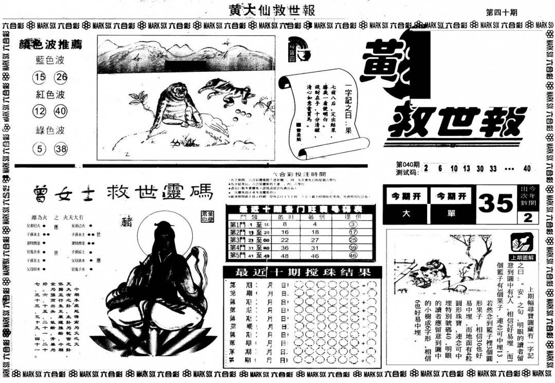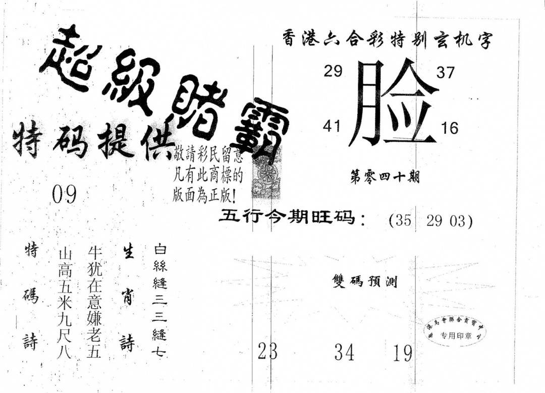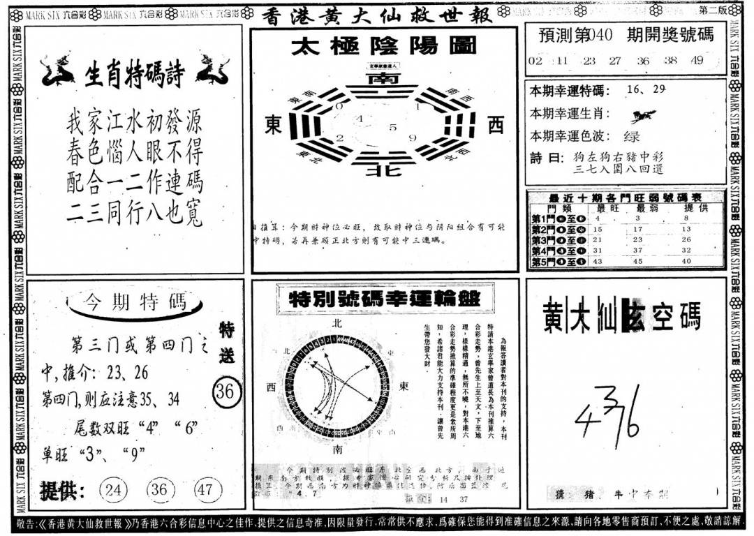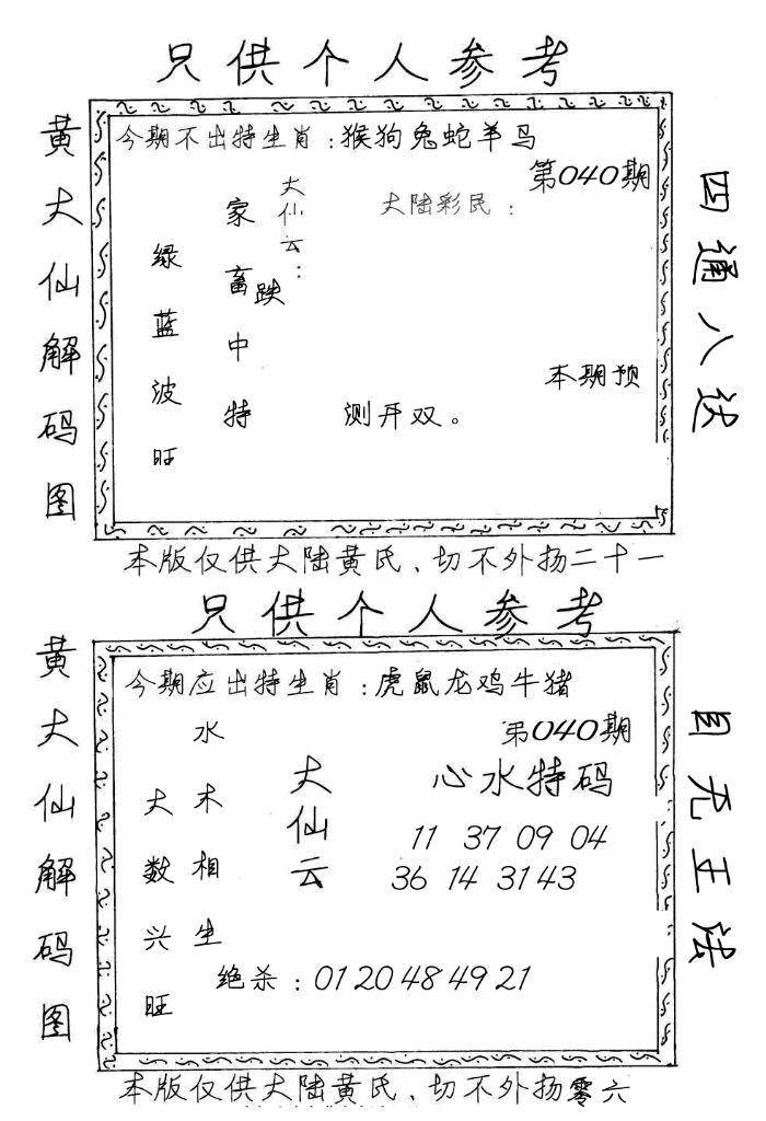 另版黄大仙灵码A