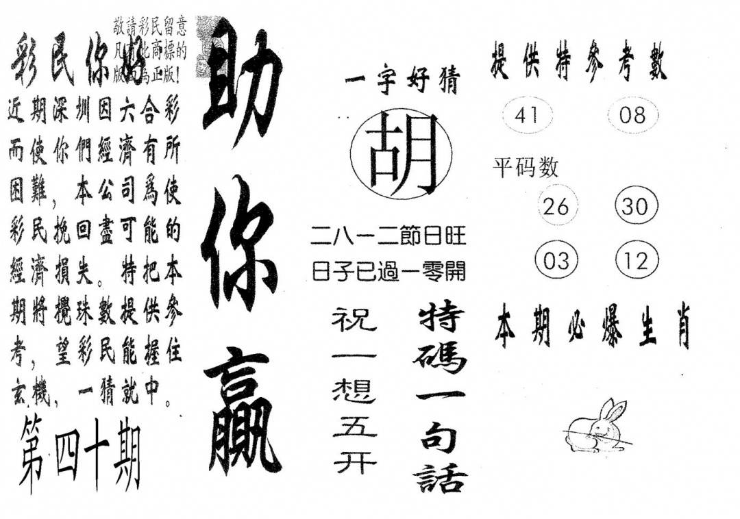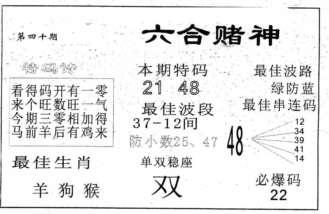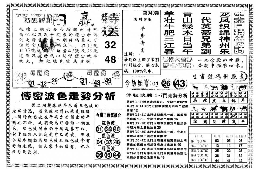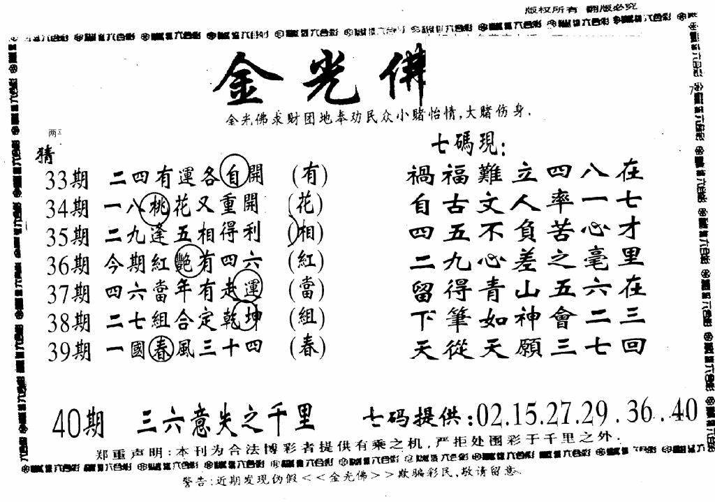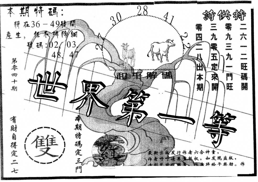 另版黄大仙灵码A