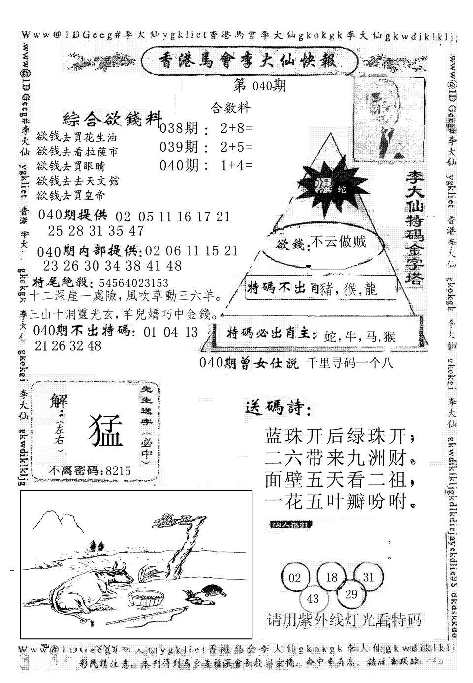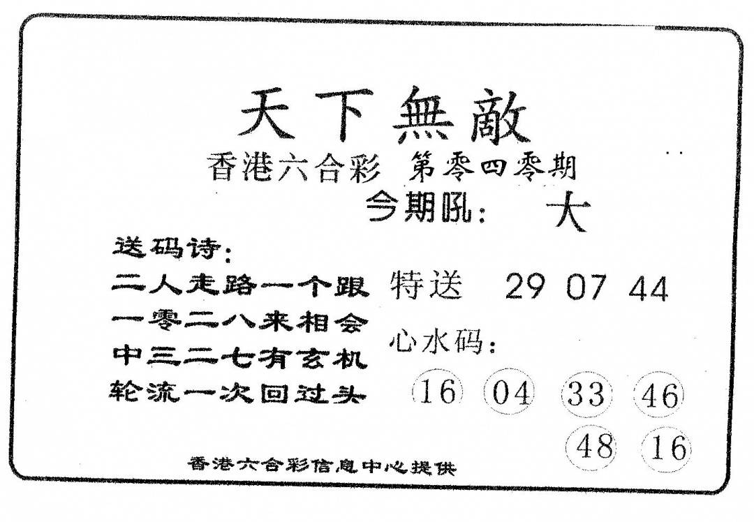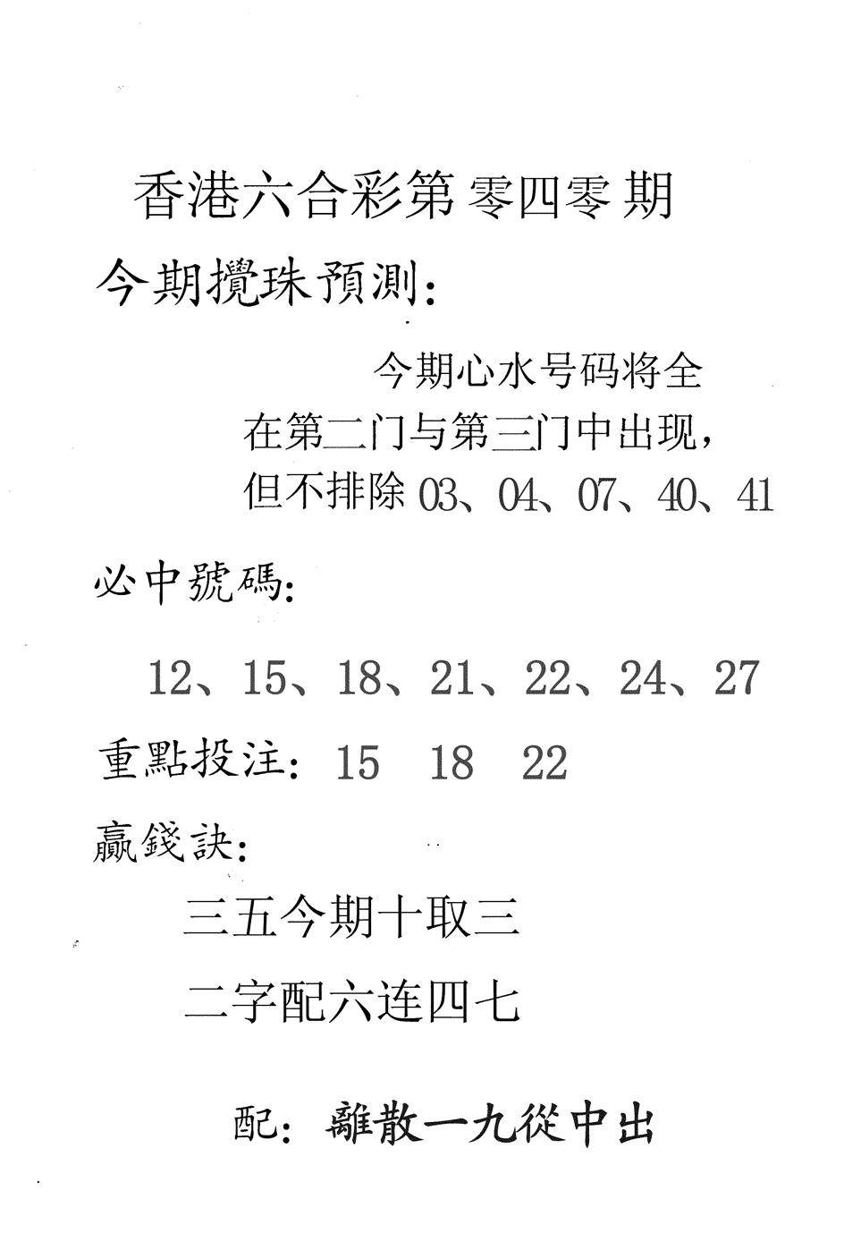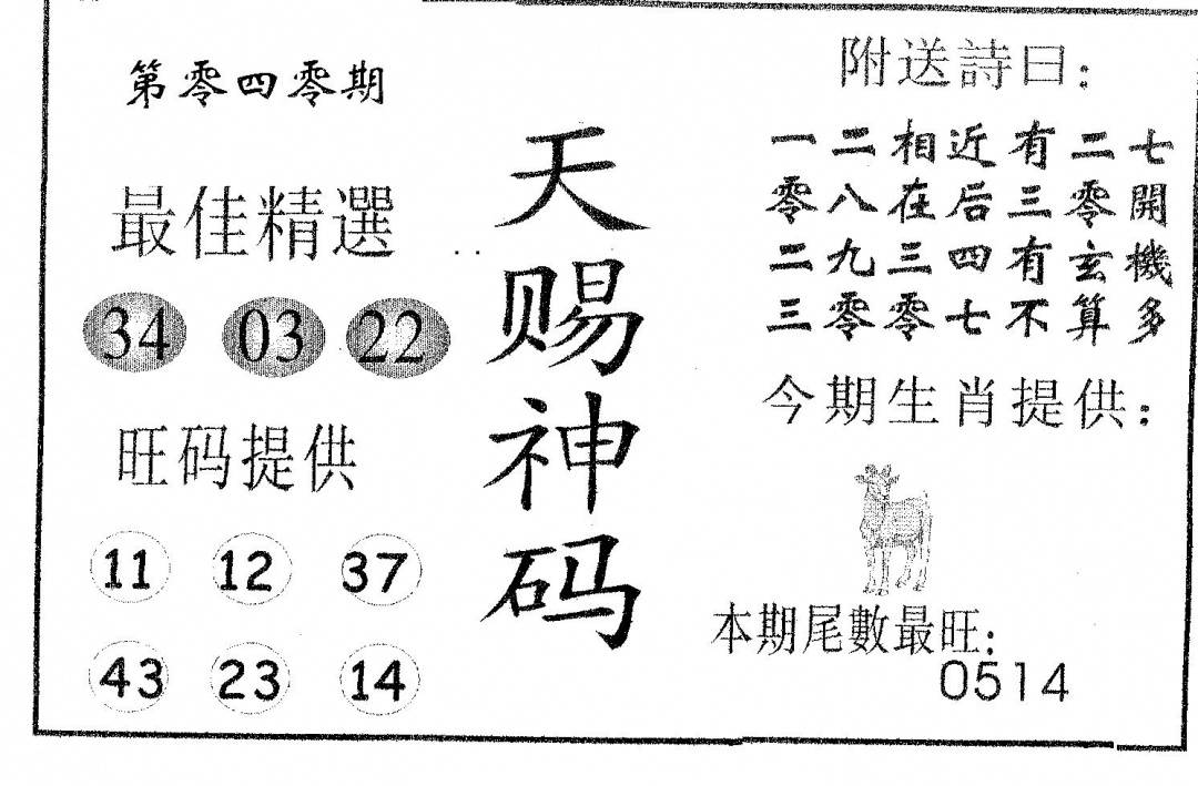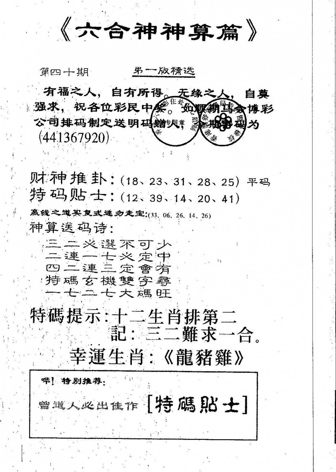 另版黄大仙灵码A