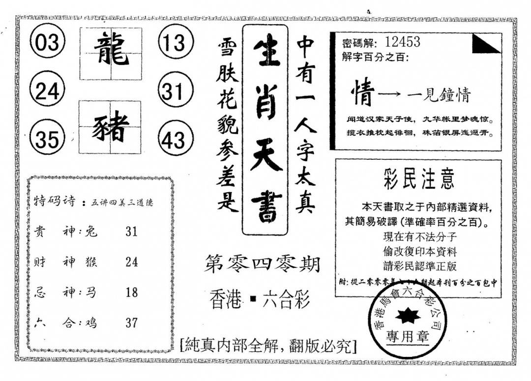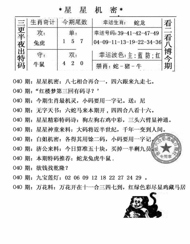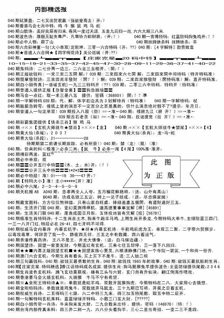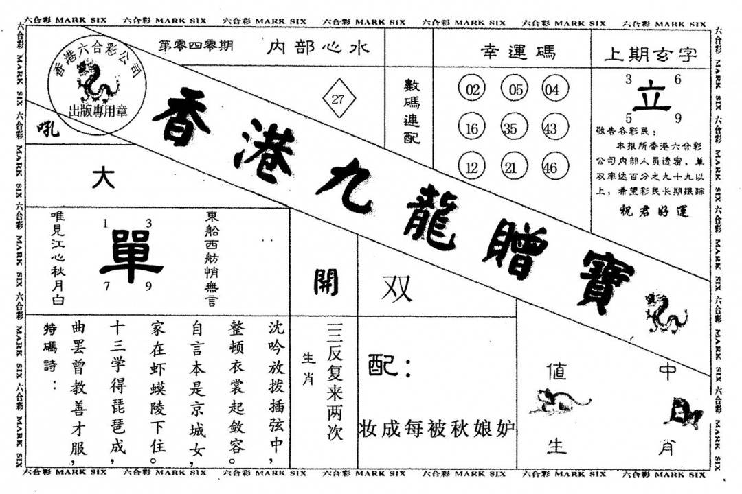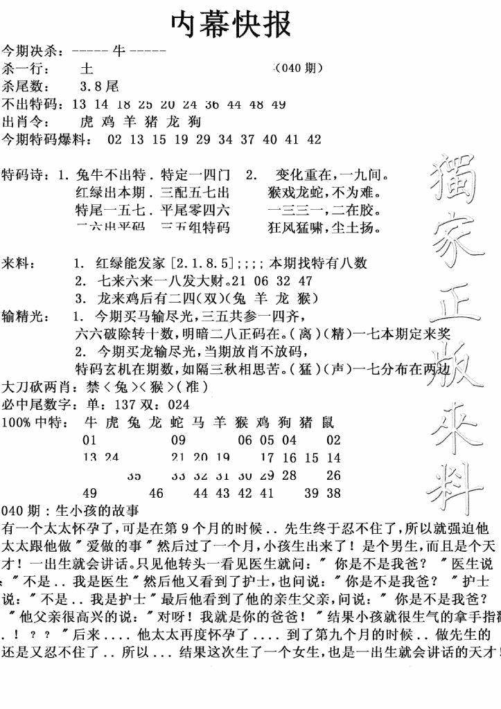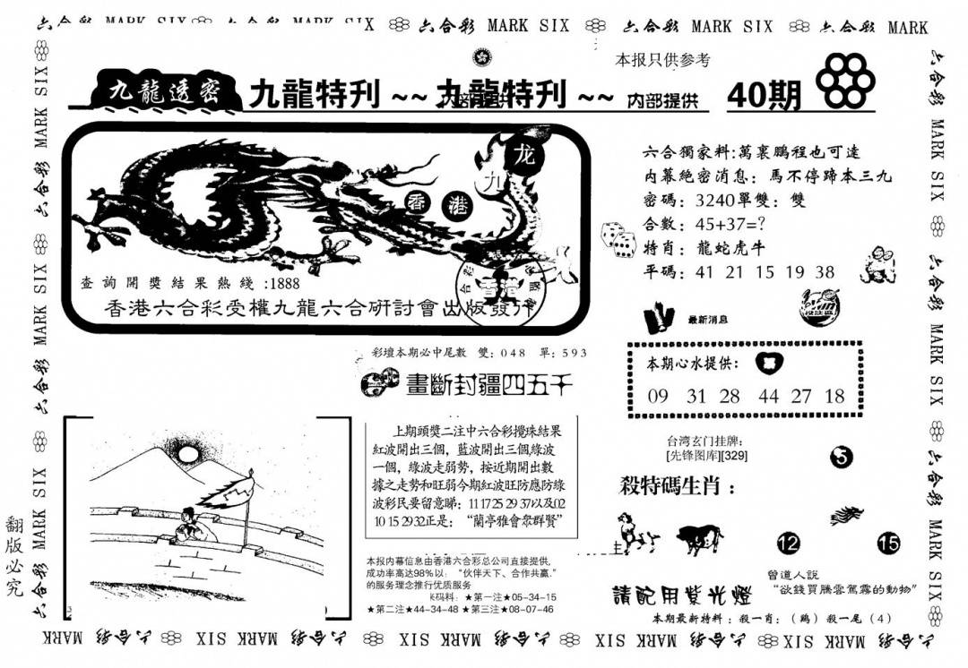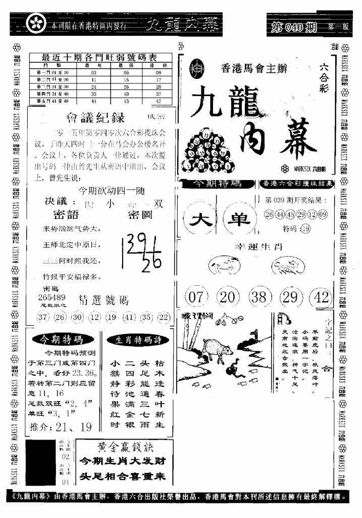 九龙内幕--开奖报