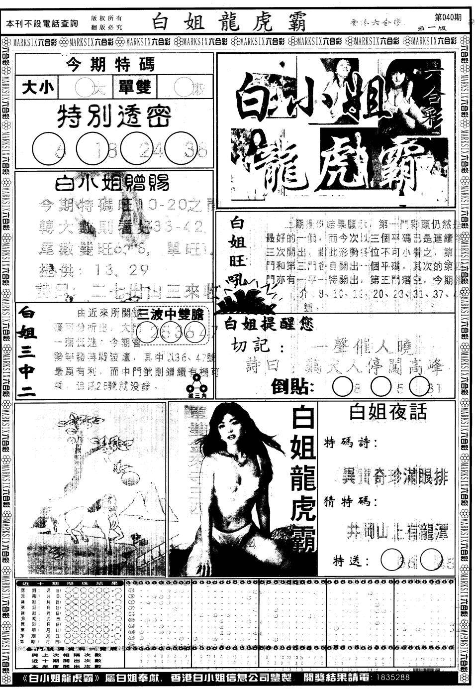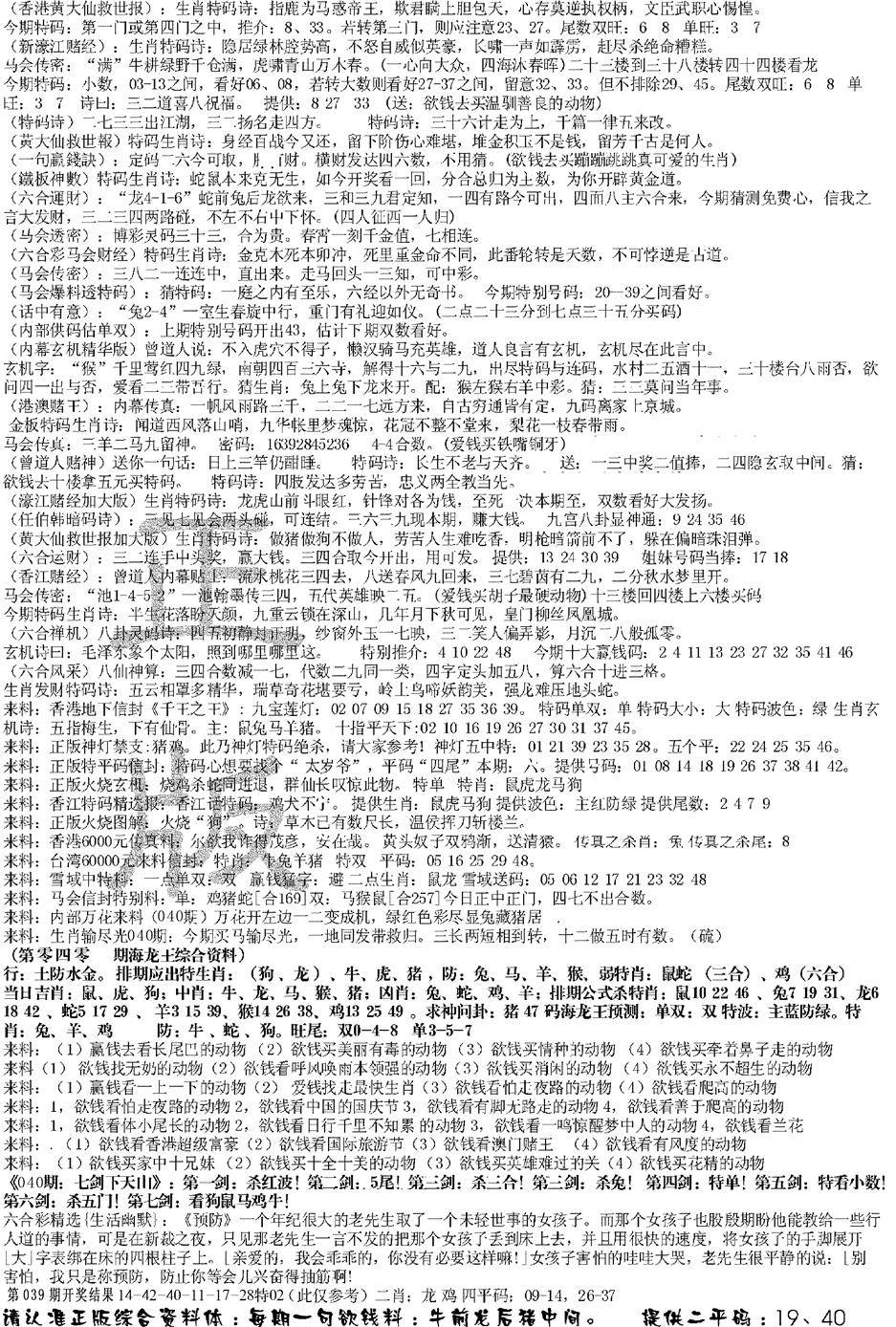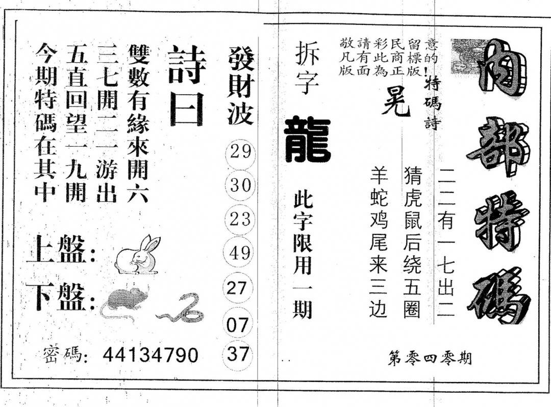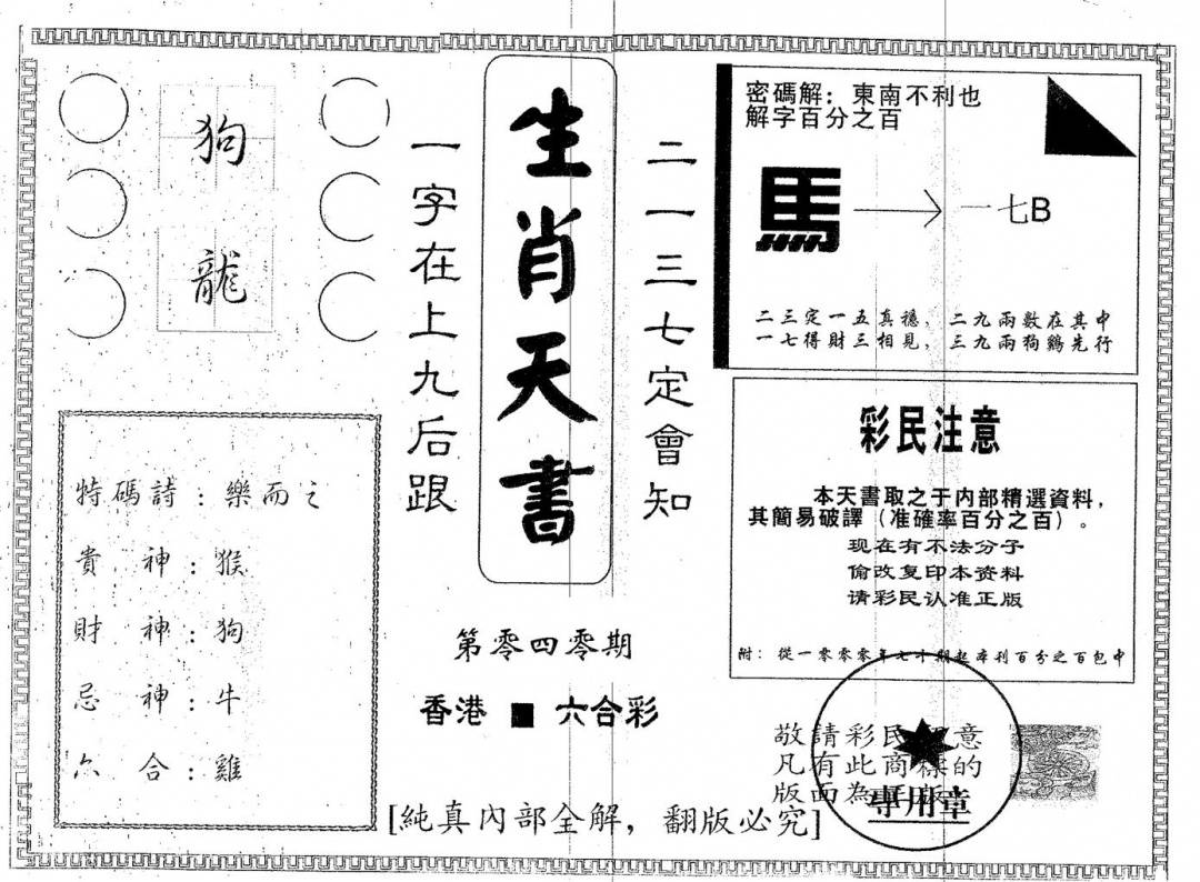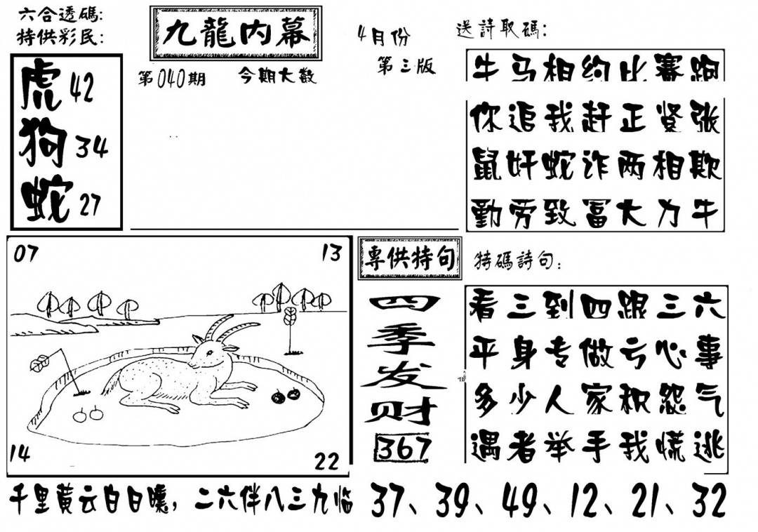 九龙内幕--开奖报