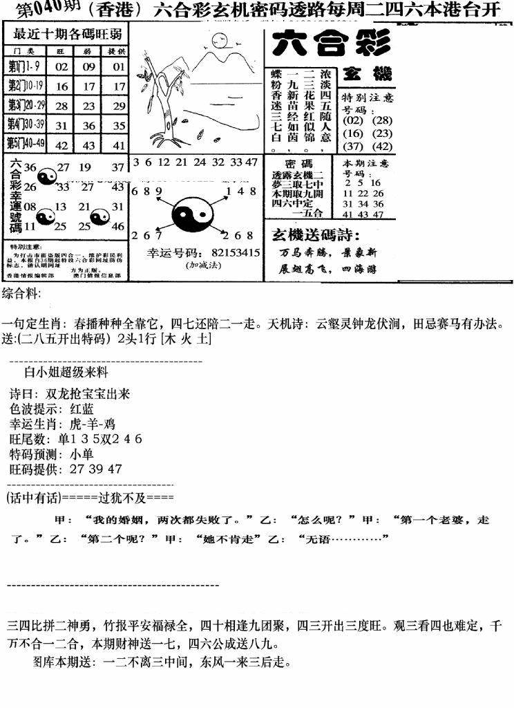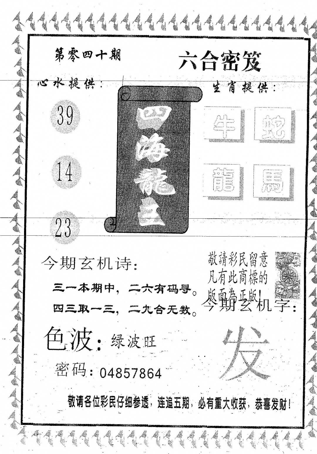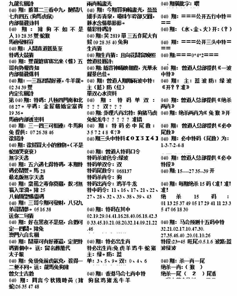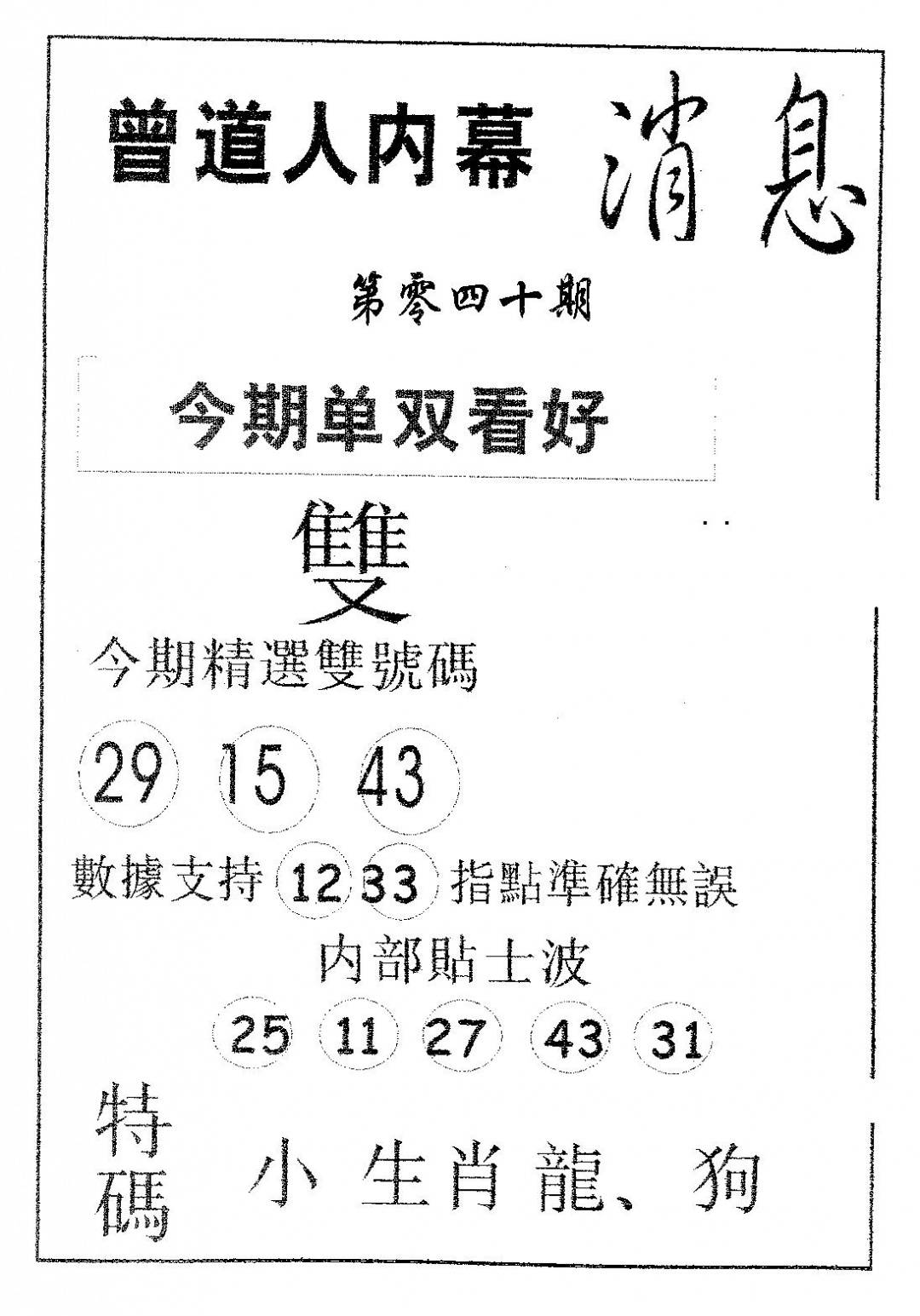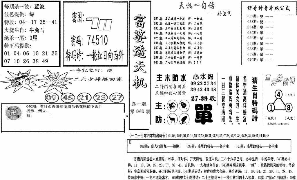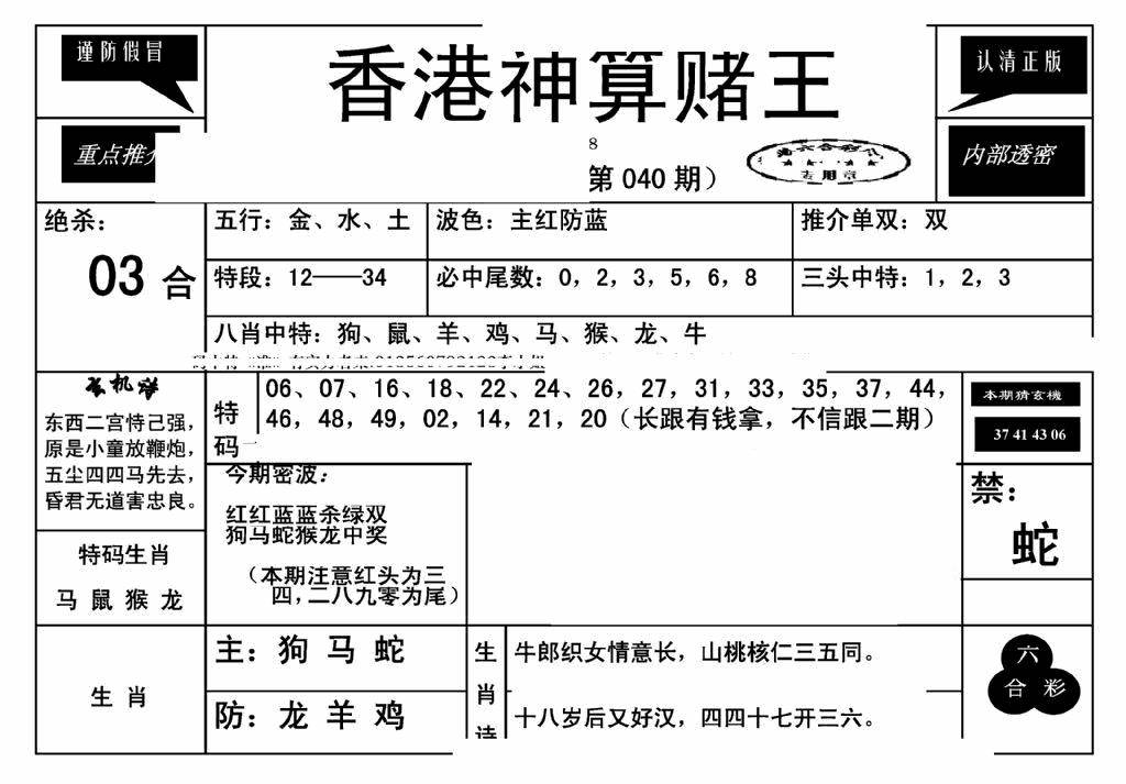 九龙内幕--开奖报