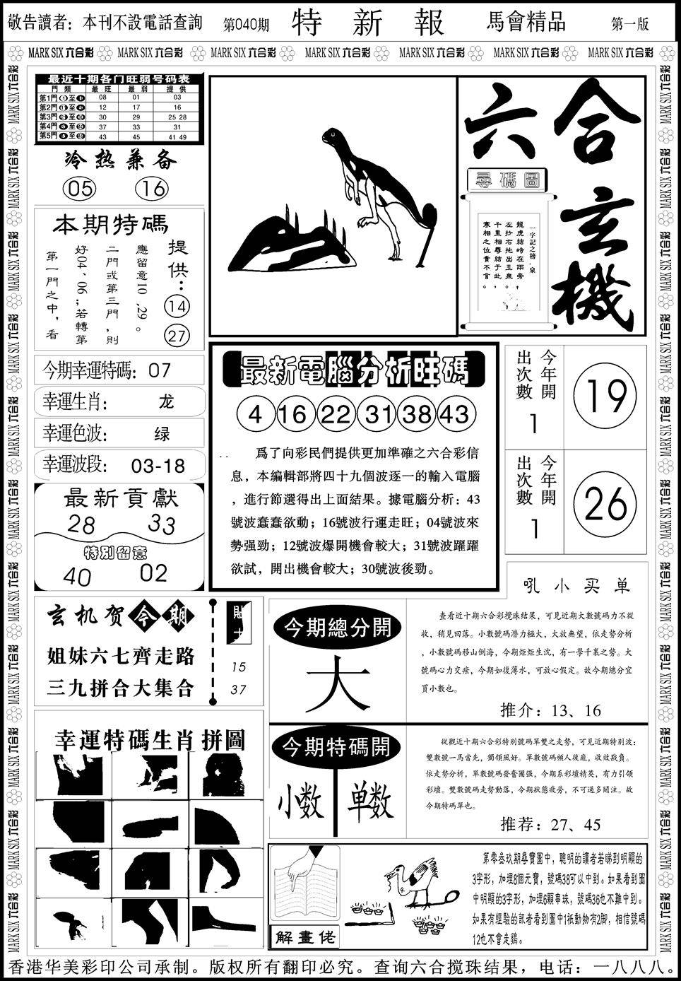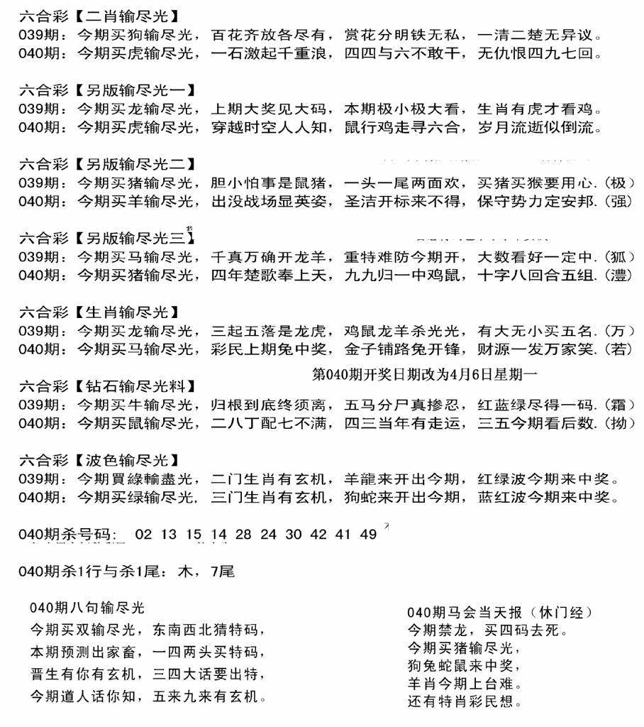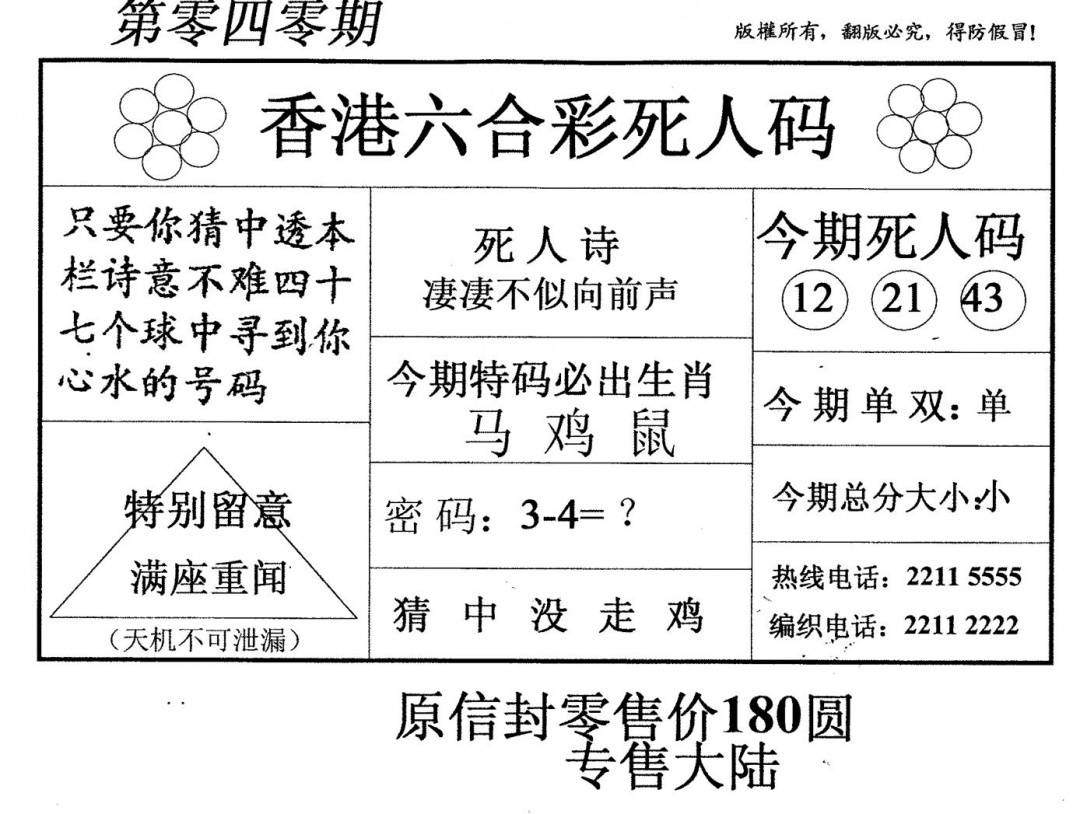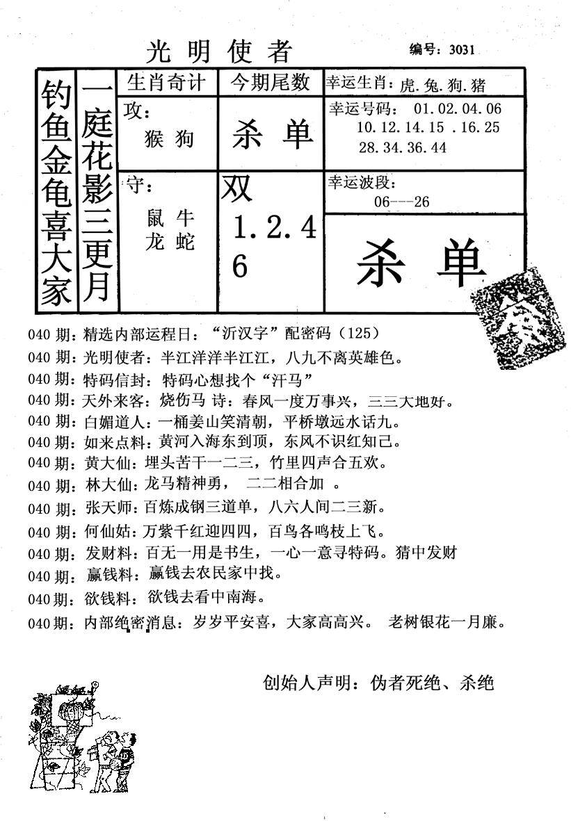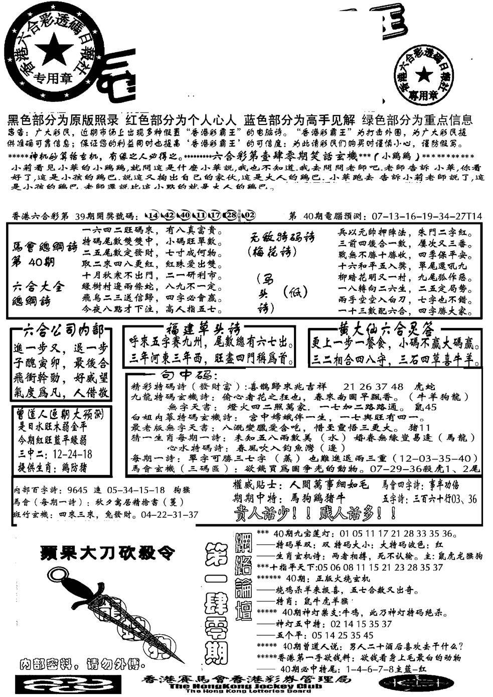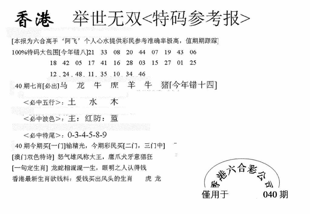 九龙内幕--开奖报