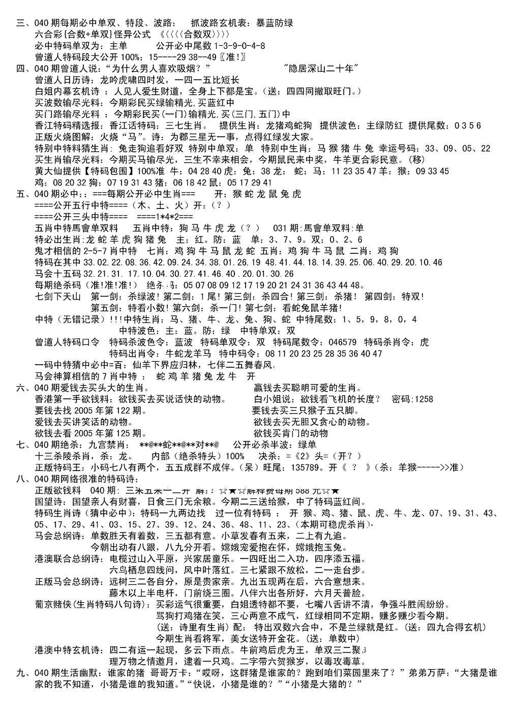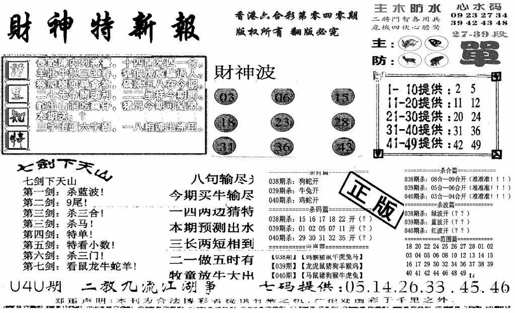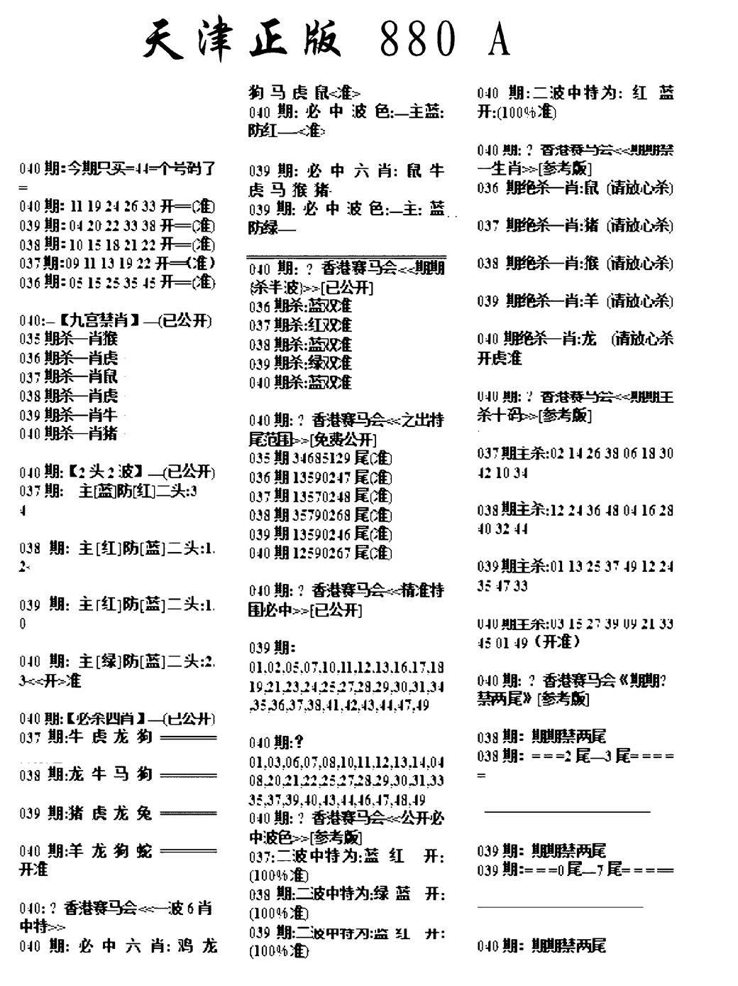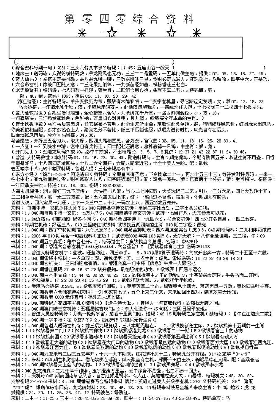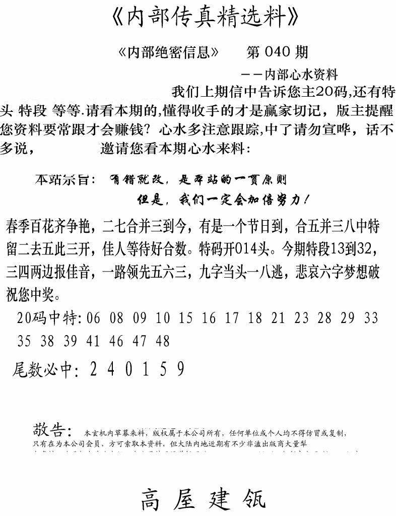九龙内幕--开奖报