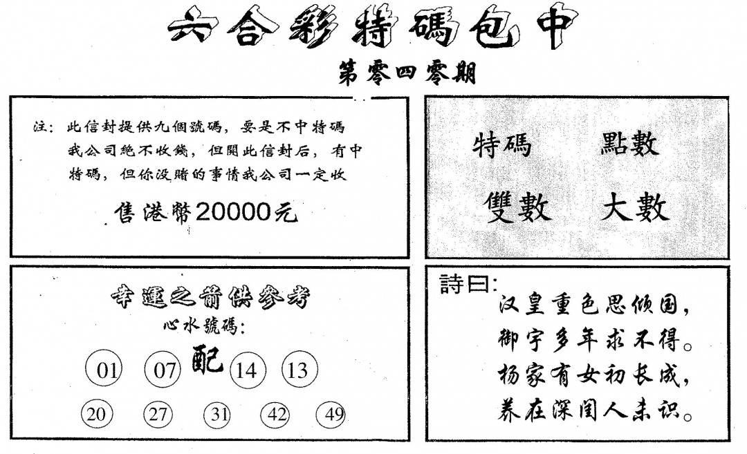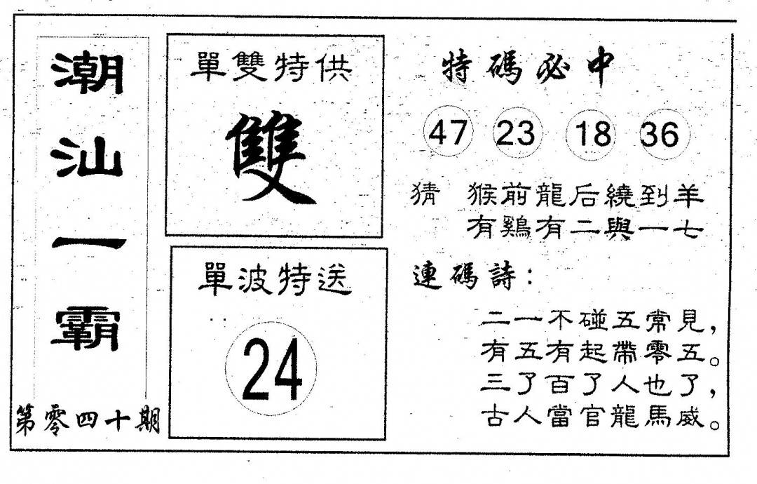 郑小姐特码报A