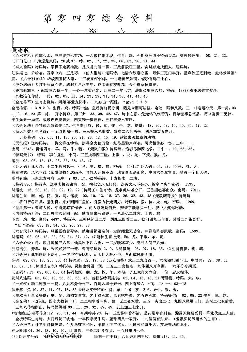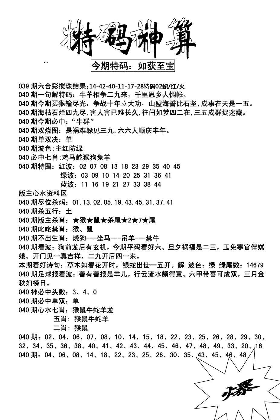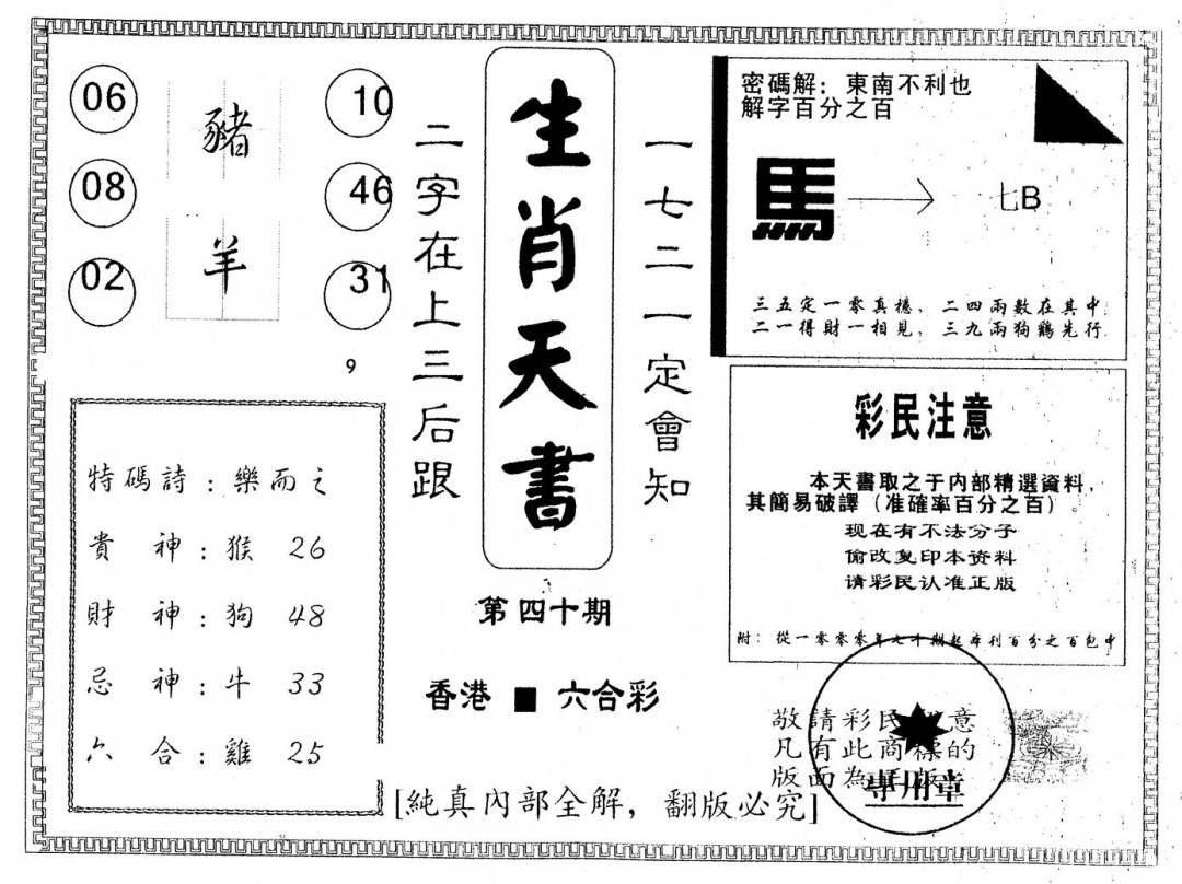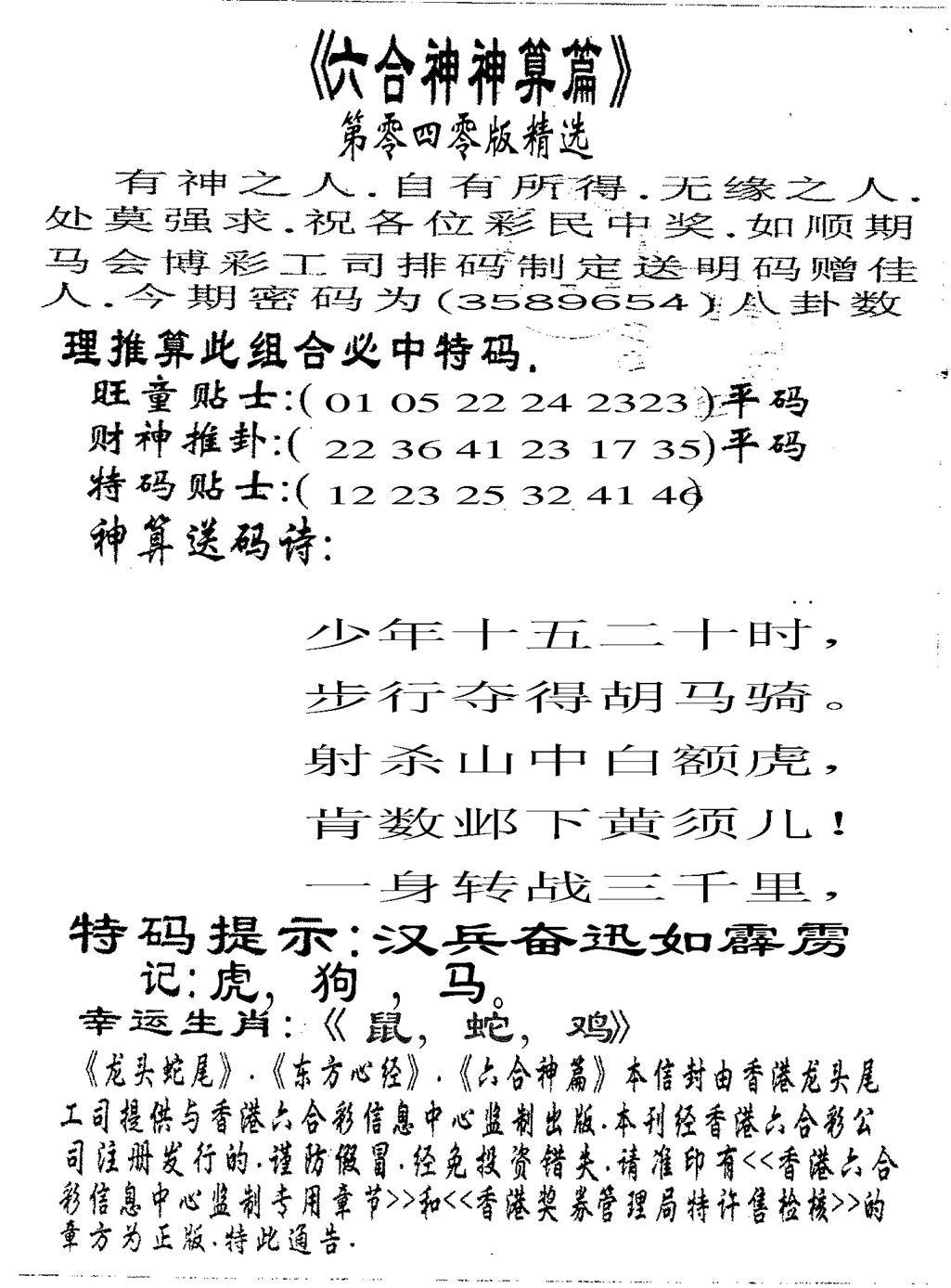 六合神算篇A