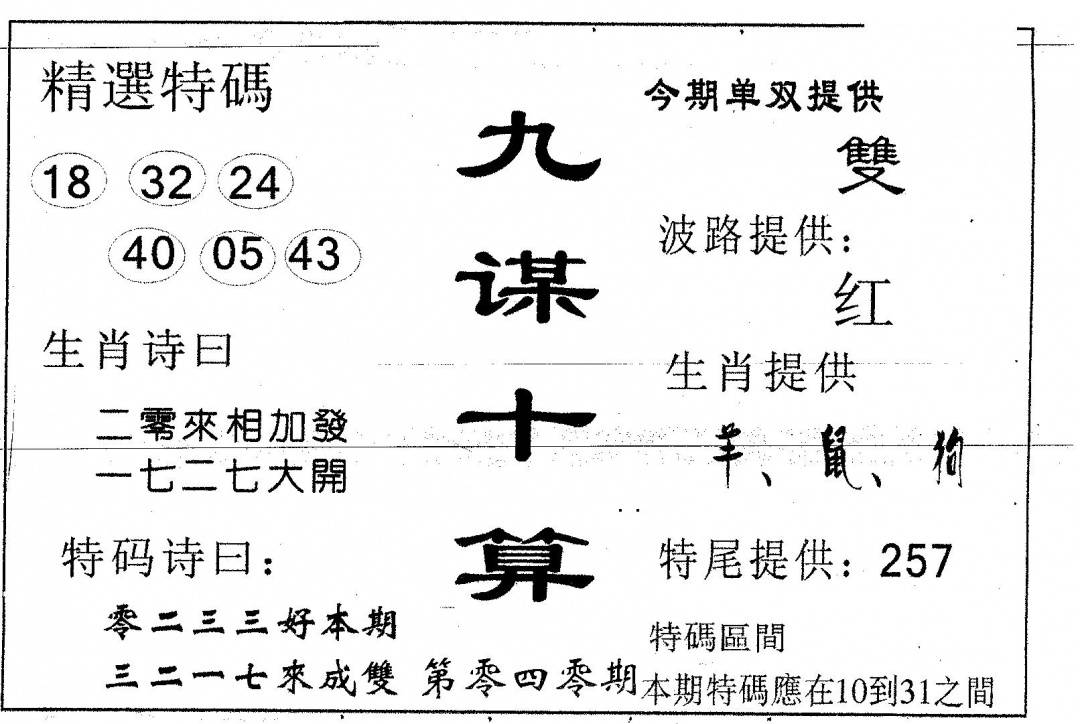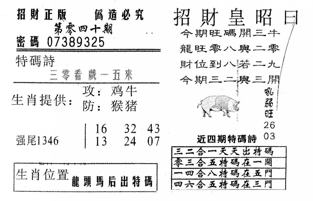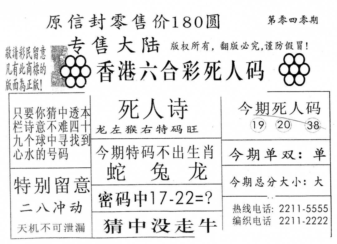 今日抓特码B(正版)