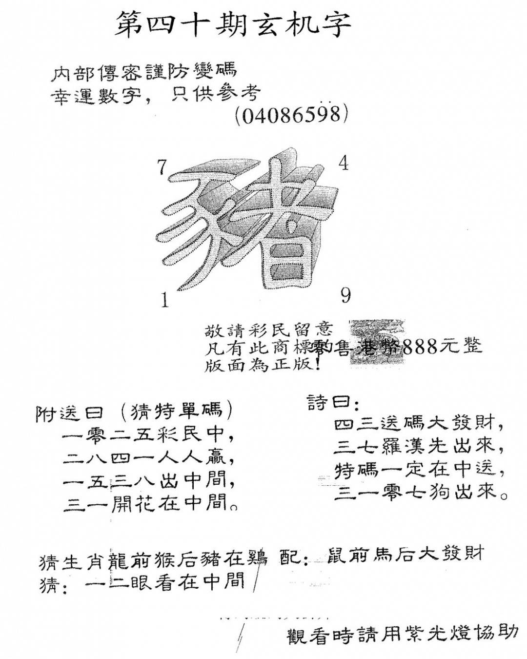 玄机字888
