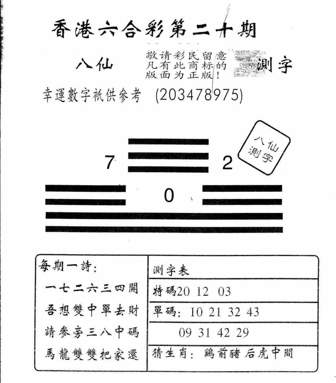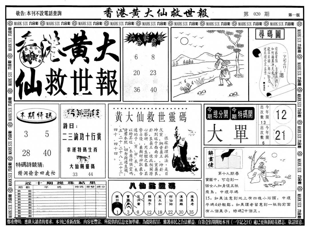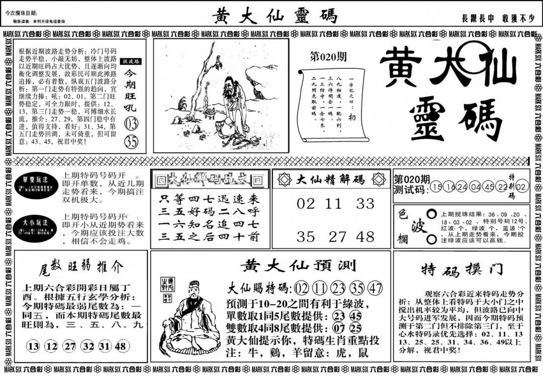 另版黄大仙灵码A