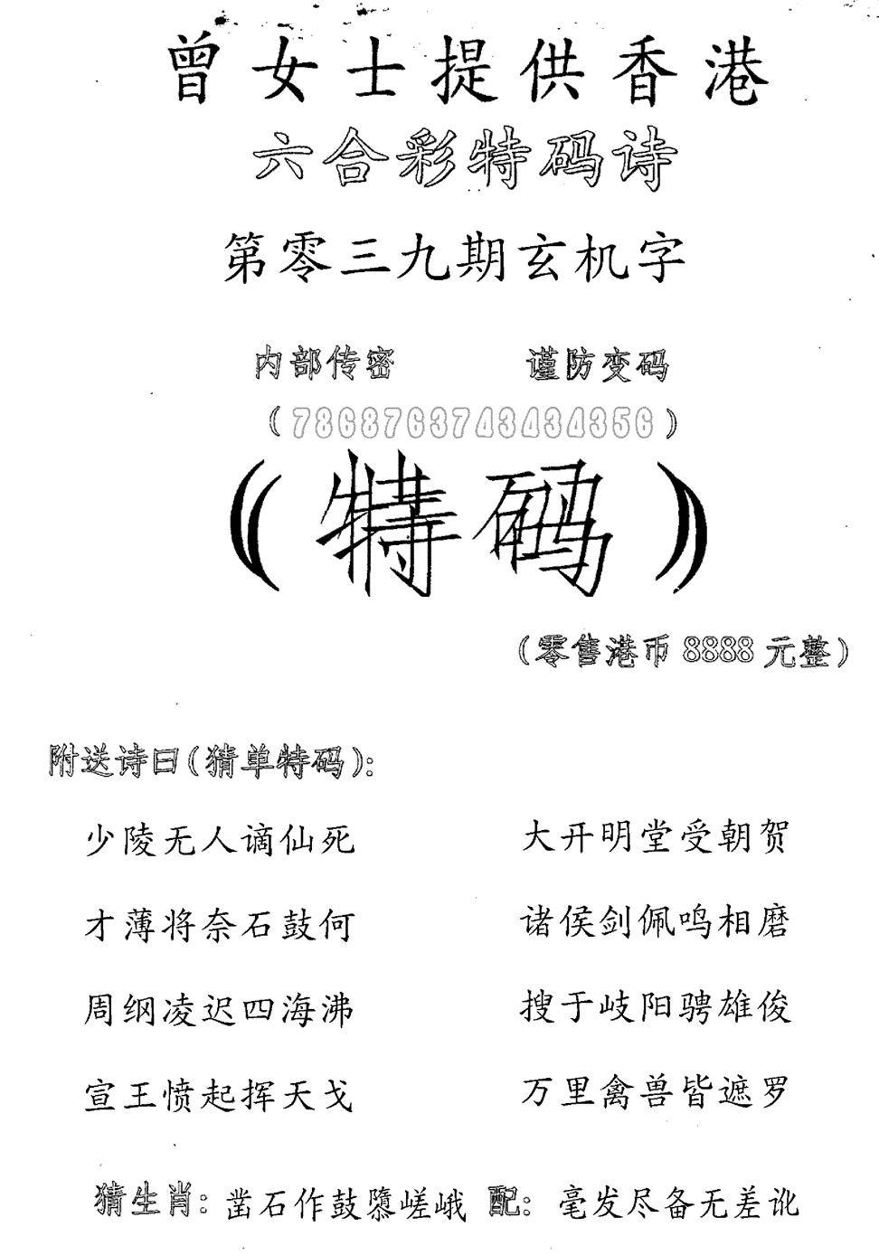 曾女士特码诗